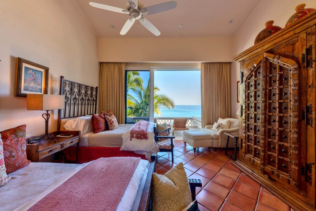 Experience an enchanting blend of comfort and luxury at beachfront Casa Espejo del Mar, Los Cabos. This four-bedroom, four-bathroom villa spanning 4,500-square-feet boasts a stunning infinity pool, a beautiful beach, and intimate interiors designed with a neo-Colonial Mexico motif. Its ambiance suits a variety of lodging needs, from family vacations to friendly getaways. Each bedroom has an attached bathroom and offers a unique charm, with terrace patios in three bedrooms offering a mesmerizing view of the beach and sea.