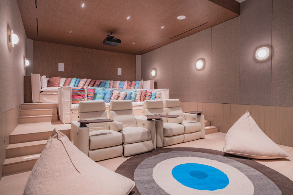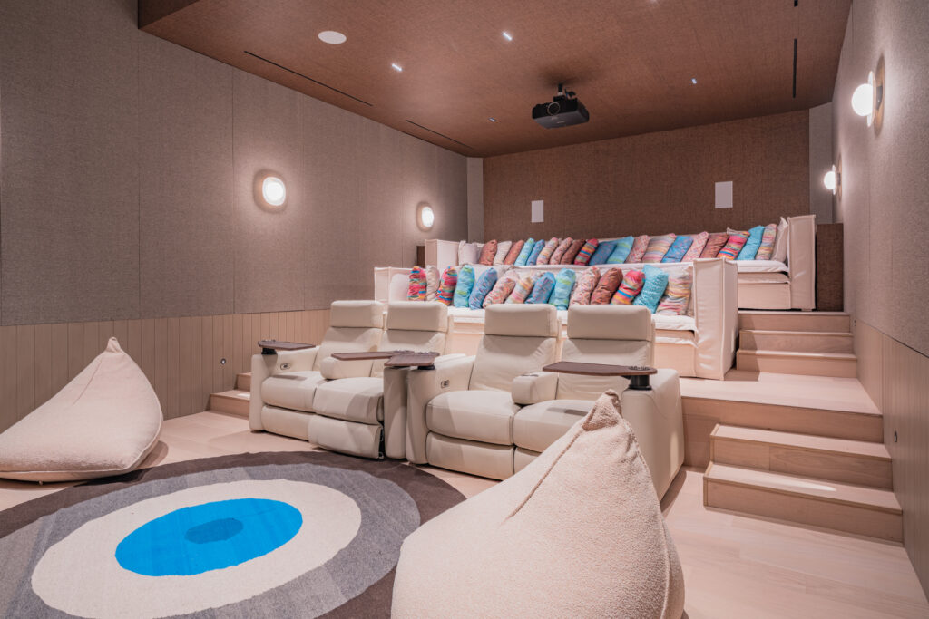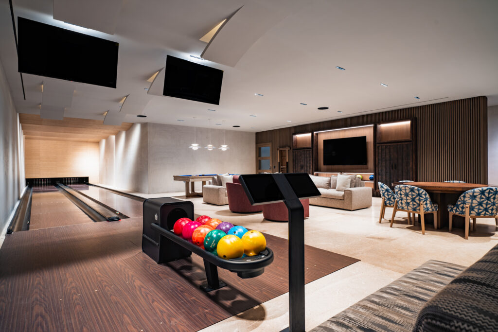 Perfect for grand gatherings or intimate celebrations, the property features dining spaces for up to 20 guests both indoors and outdoors, ideal for unforgettable meals beneath the stars or in sophisticated, elegant interiors. Entertainment abounds with a private bowling alley, a state-of-the-art home movie theater, and a pool table—ensuring endless fun for guests of all ages.