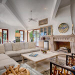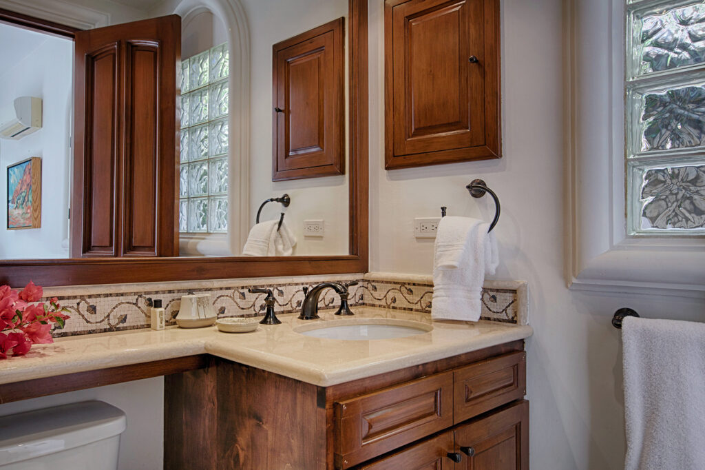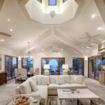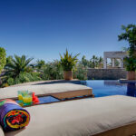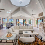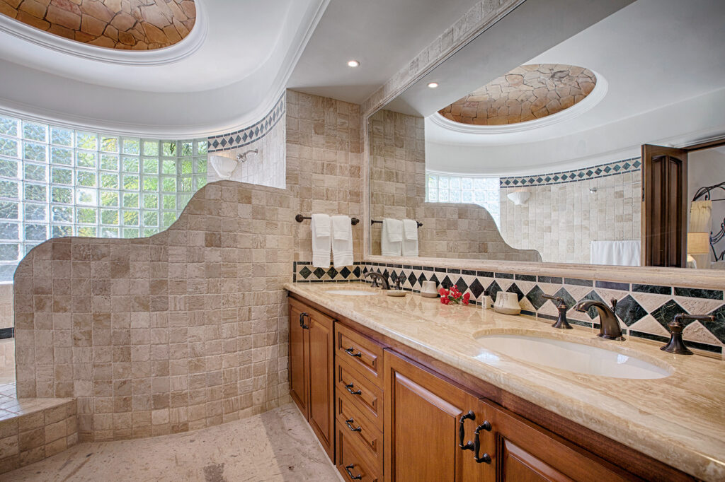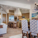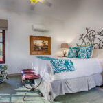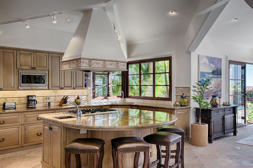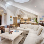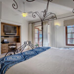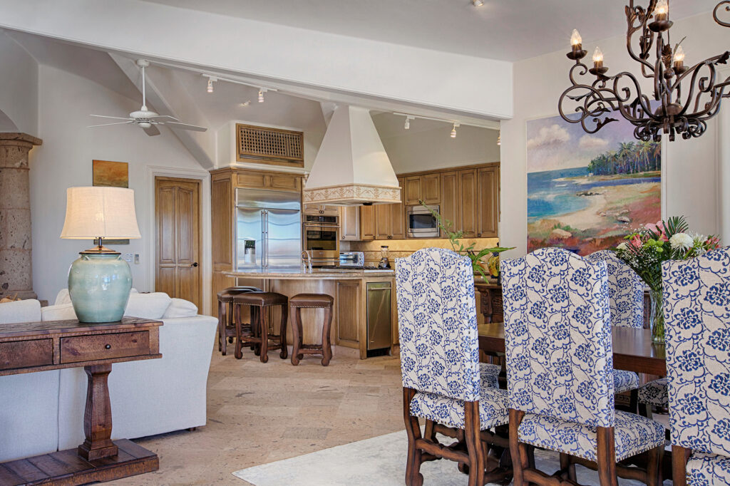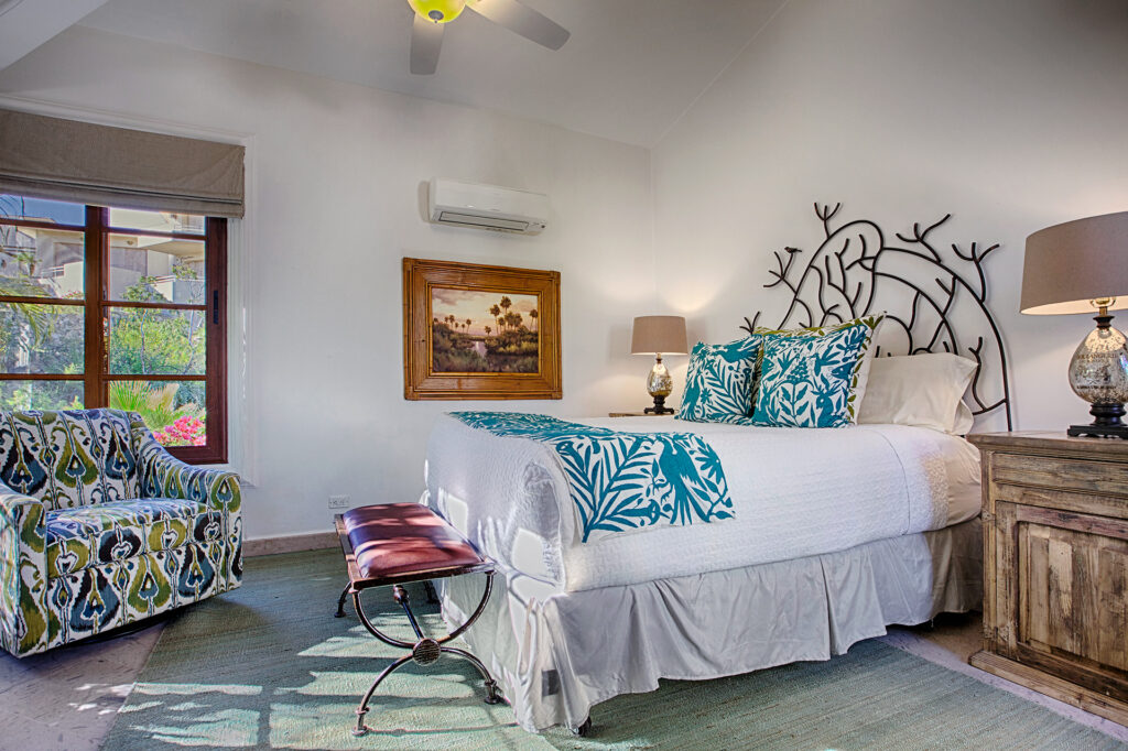 Inside, you’ll find a gourmet kitchen equipped with top-tier appliances and the option for private chef services. The villa’s spacious layout includes a comfortable living and dining area, perfect for gatherings. The master suite features a king-sized bed, en-suite bathroom, walk-in closet, and TV. Four additional guest suites in detached casitas offer various bedding configurations, each with its own bathroom and high-quality amenities.