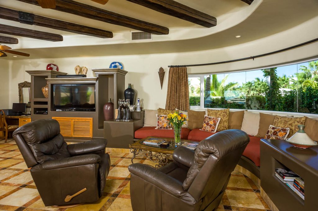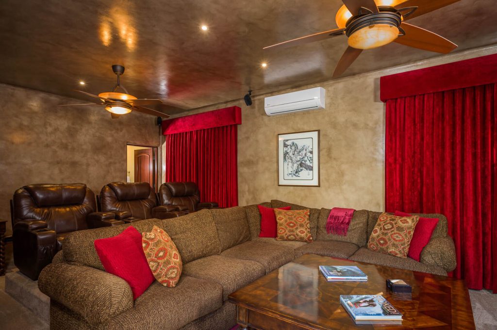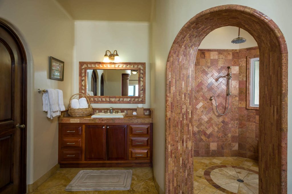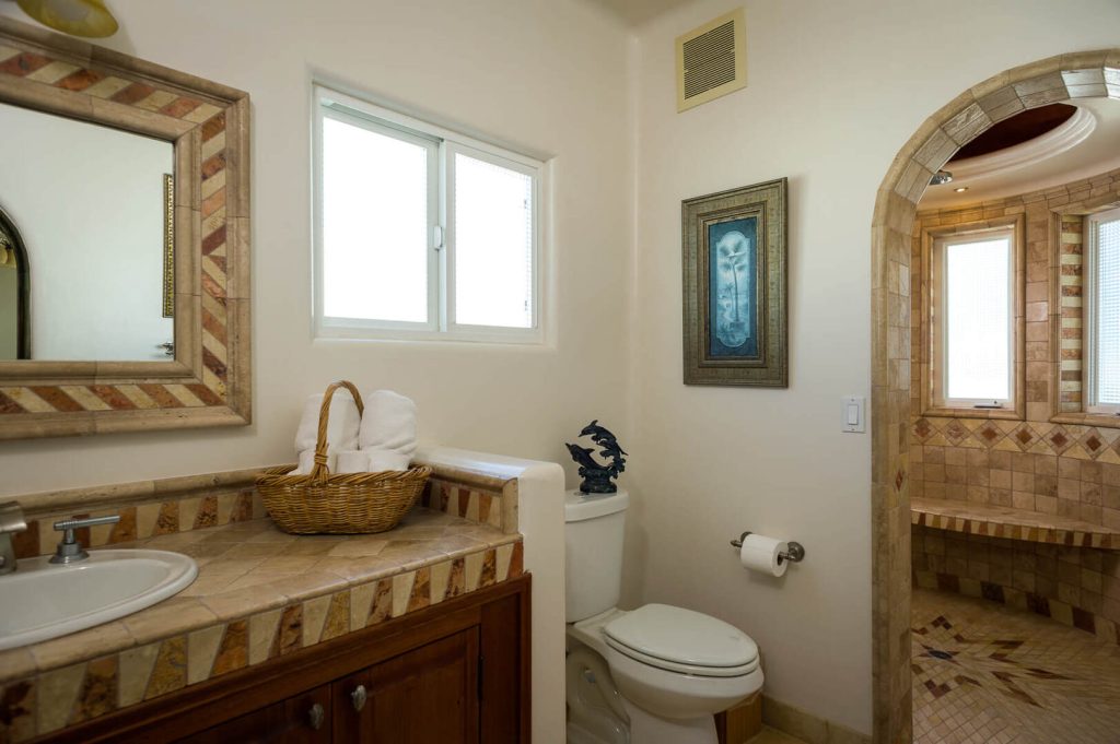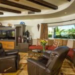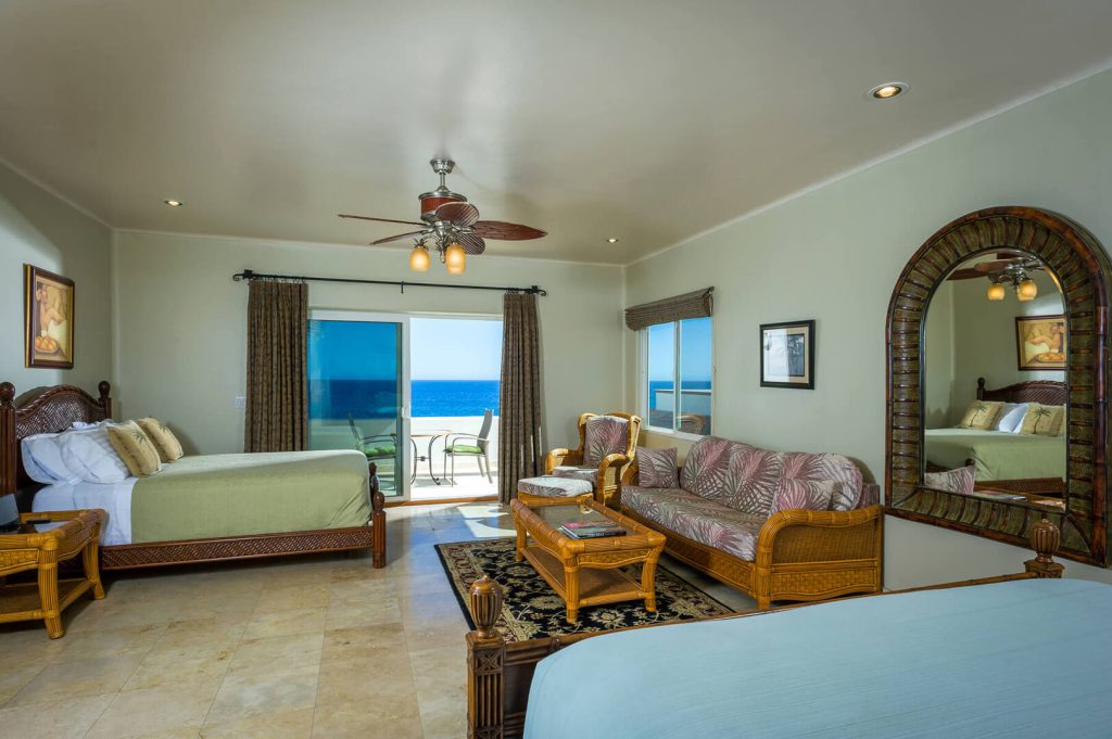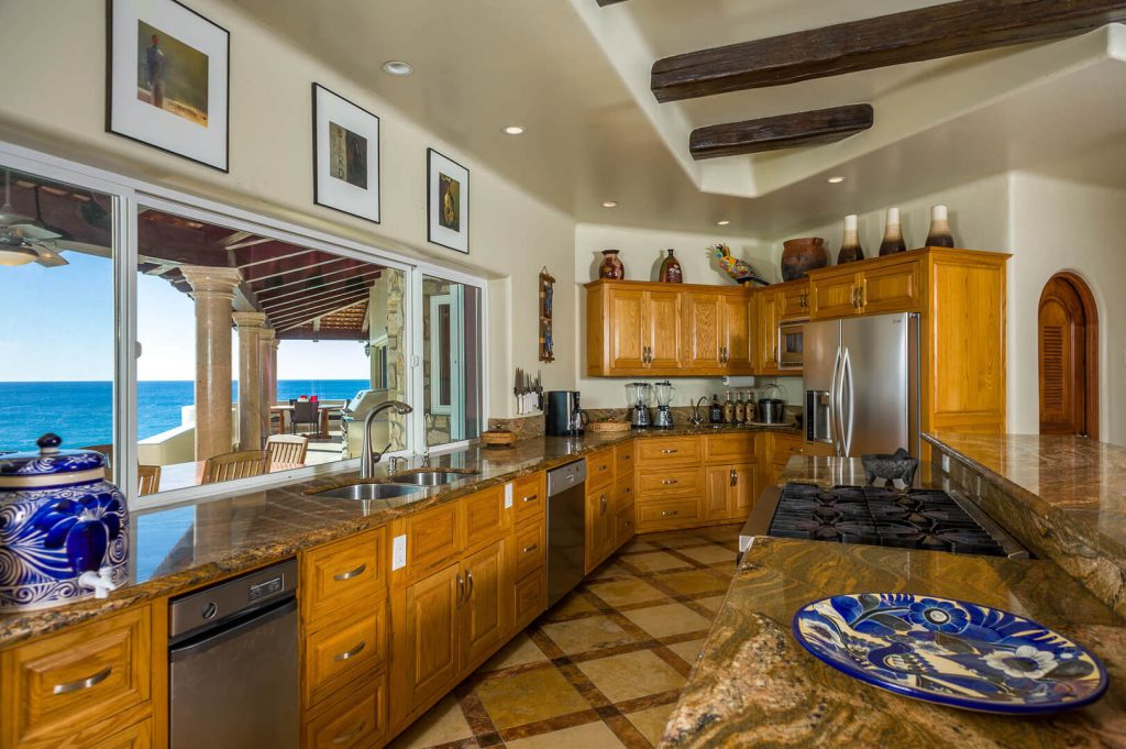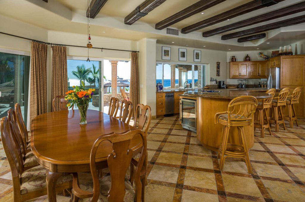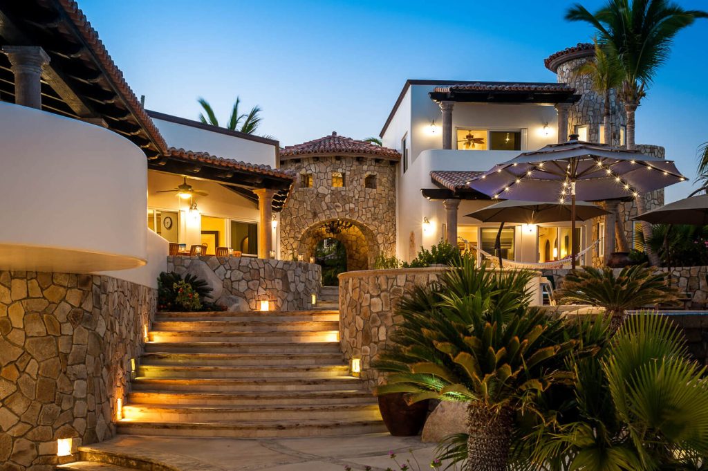 Welcome to Casa Ocho Chiquita, a stunning blend of Spanish hacienda, Moorish castle, and Mediterranean-style architecture in a luxury 5-bedroom, 5.5-bath Cabo vacation villa. At 6,000 square feet, this exquisite home offers sweeping views of the Sea of Cortez from its expertly-decorated bedrooms, each featuring plush cushions, lavish linens, and ensuite bathrooms. The refined interiors boast marble floors, hand-crafted wood furnishings, a chic living area with a wide-screen TV, and a gourmet kitchen equipped with deluxe stainless steel appliances. The villa, designed with conservation in mind, operates on solar power with a back-up generator.