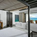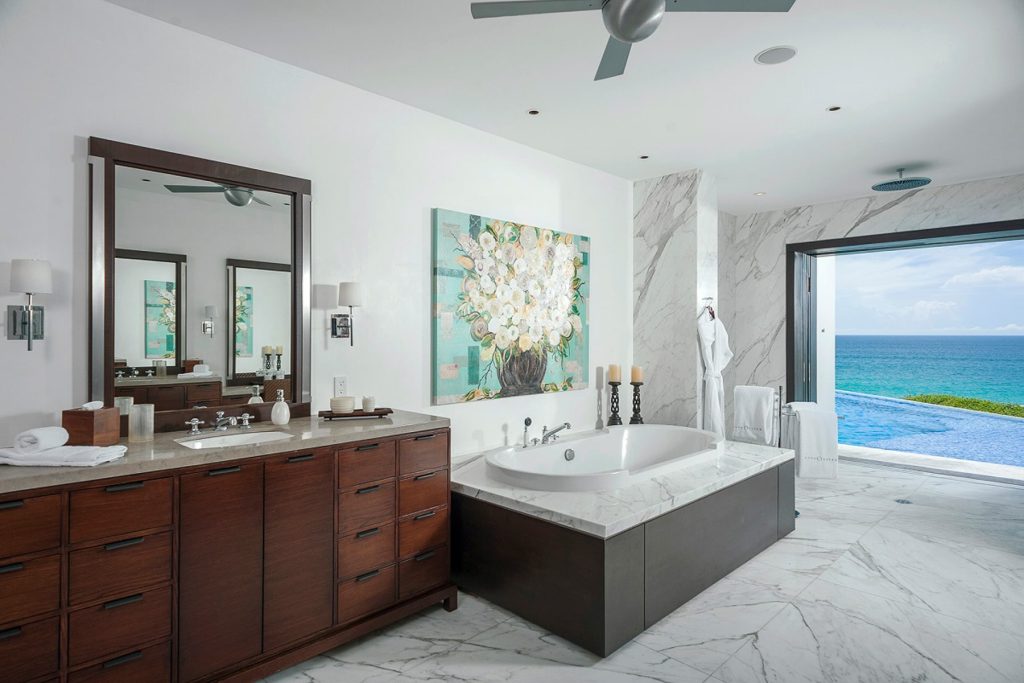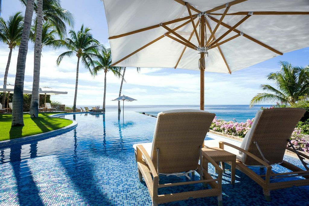 Stunning artwork is found in every room at Oliver with a special 3-panel piece in the living area that mirrors the sand, sea and sky pouring in through the massive recessed glass doors. Cool breezes flow off the Cortez and warm sunshine brightens, creating a comfortable and inviting ambience throughout the home. Oliver’s six bedroom suites and private guest apartment rival one another in luxury and stylish comfort. Two rooms have King beds with the other rooms having queen beds – all with spa-like ensuite baths. Discover perfection on Casa Oliver’s multi-level terraces where 5-star resort luxury meets endless ocean vistas. Outdoor living at Oliver includes a deluxe gas grill and fire pit, rattan lounge beds and teak sun chairs that seemingly float in the shallow waters of the glistening infinity edge pool. Elegant, bold, exquisite and captivating, Casa Oliver redefines luxury living in Los Cabos.