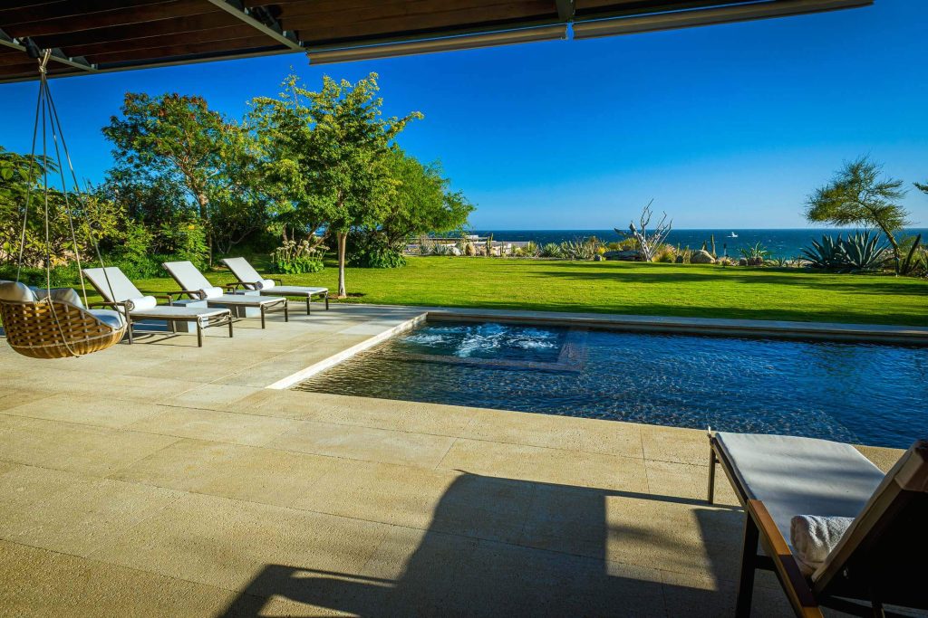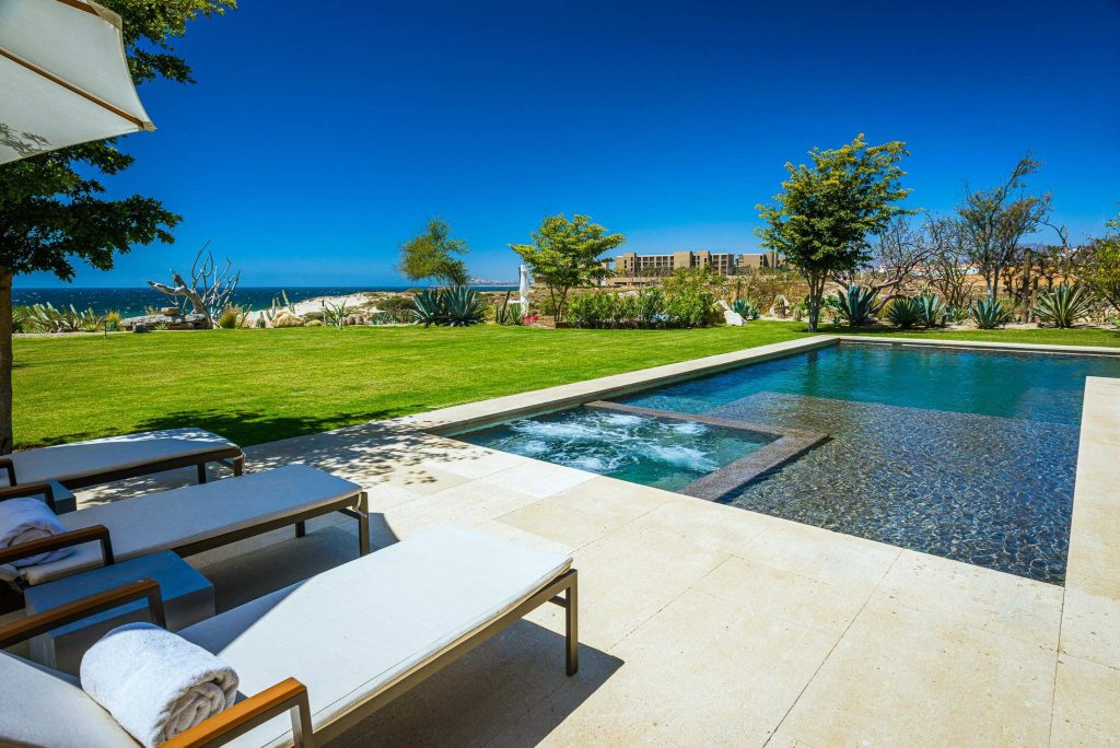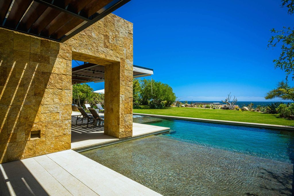 Nestled within Puerto Los Cabos’ gated community, the ultra-modern Enclave West Villa #8, part of the exclusive Ritz-Carlton Residences, offers 10,000+ square feet of opulent space just steps from the beach. Indulge in upscale amenities including a heated pool, Jacuzzi, sun terrace, fire pit, and fully equipped outdoor living room, all presenting sweeping Sea of Cortez views. The villa also boasts a landscaped garden with shade trees, enhancing the grandeur of the outdoor living experience.