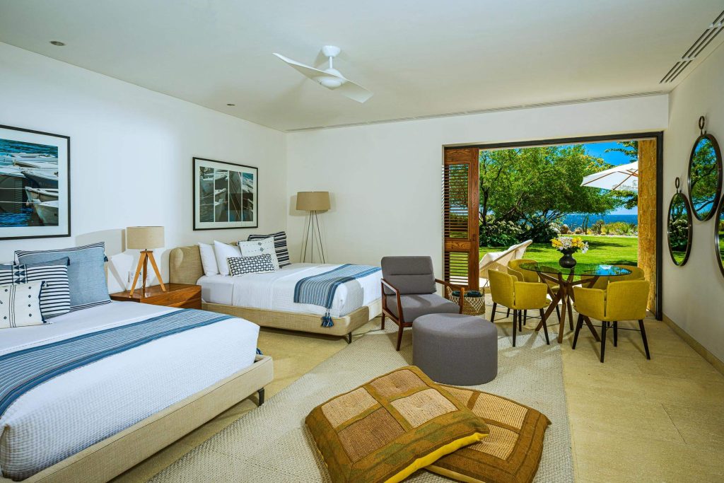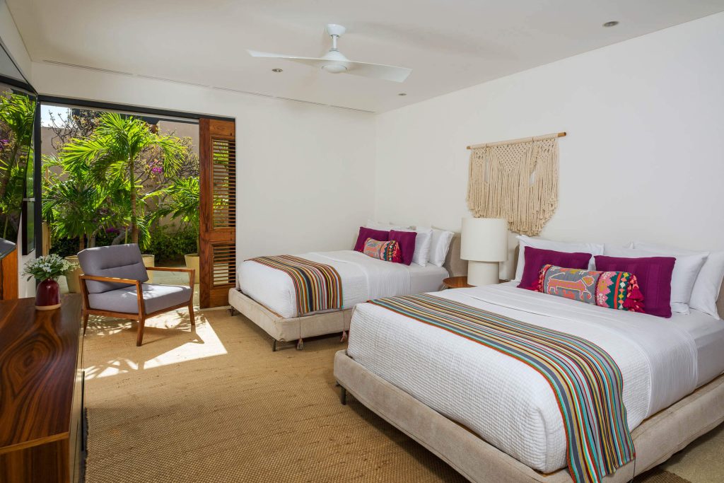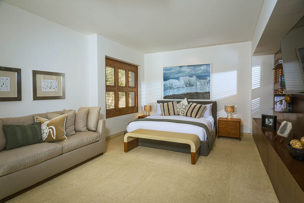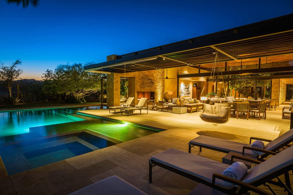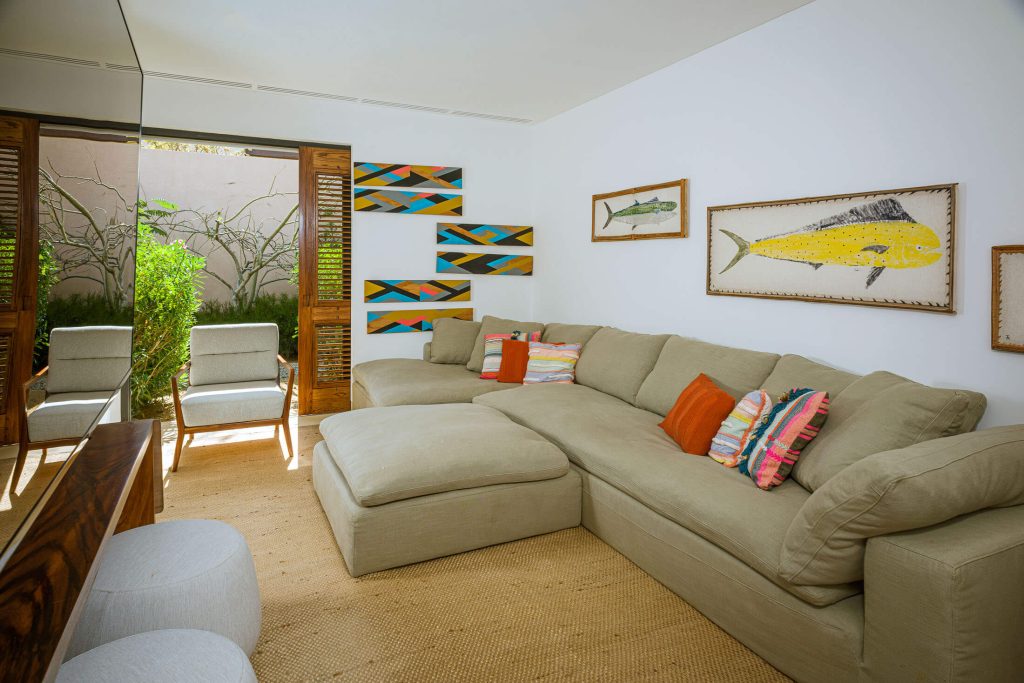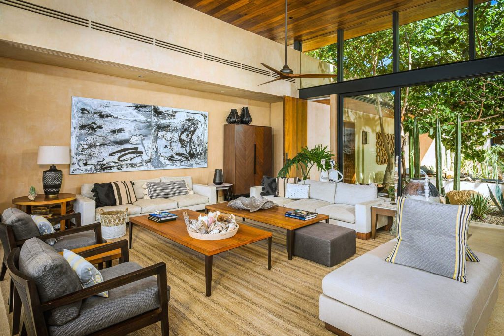 Inside, enjoy a luxurious, light-filled living room with soaring ceilings, a wet bar, and a wall of glass leading to a secluded courtyard. The five elegant bedrooms, some with direct patio access, along with six bathrooms offering the option of indoor/outdoor showers, create an intimate setting. The gourmet kitchen and cozy TV room add to the villa’s refined appeal, catering to up to 14 adults and 2 children. Conveniently located near Zadun hotel, a private beach club, marina, and two golf courses, the villa embodies the best of Los Cabos lifestyle and includes daily maid service.