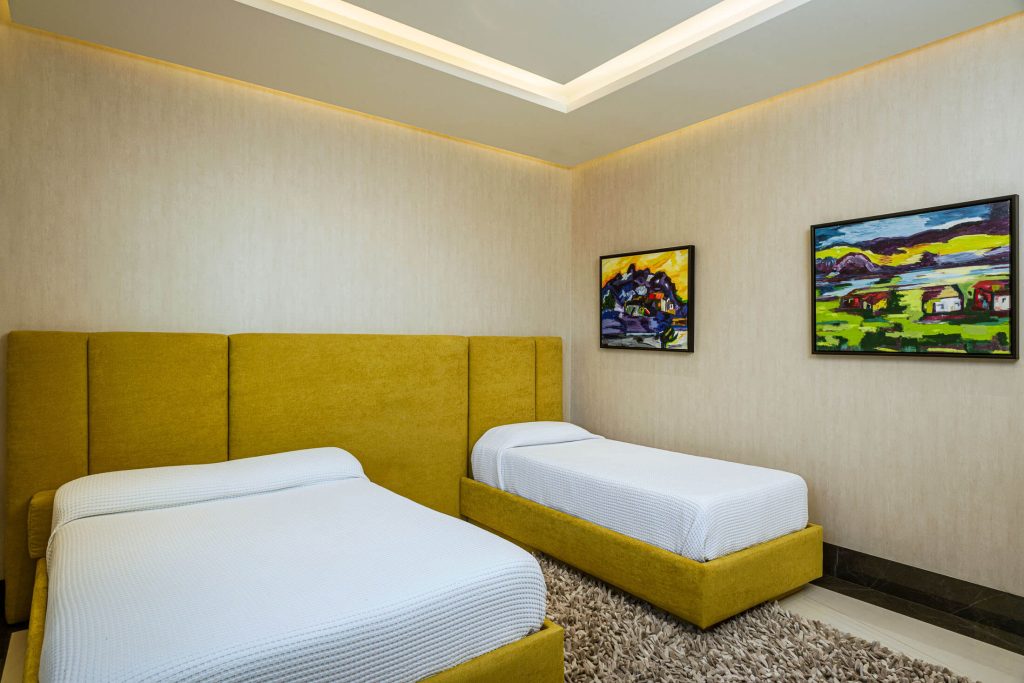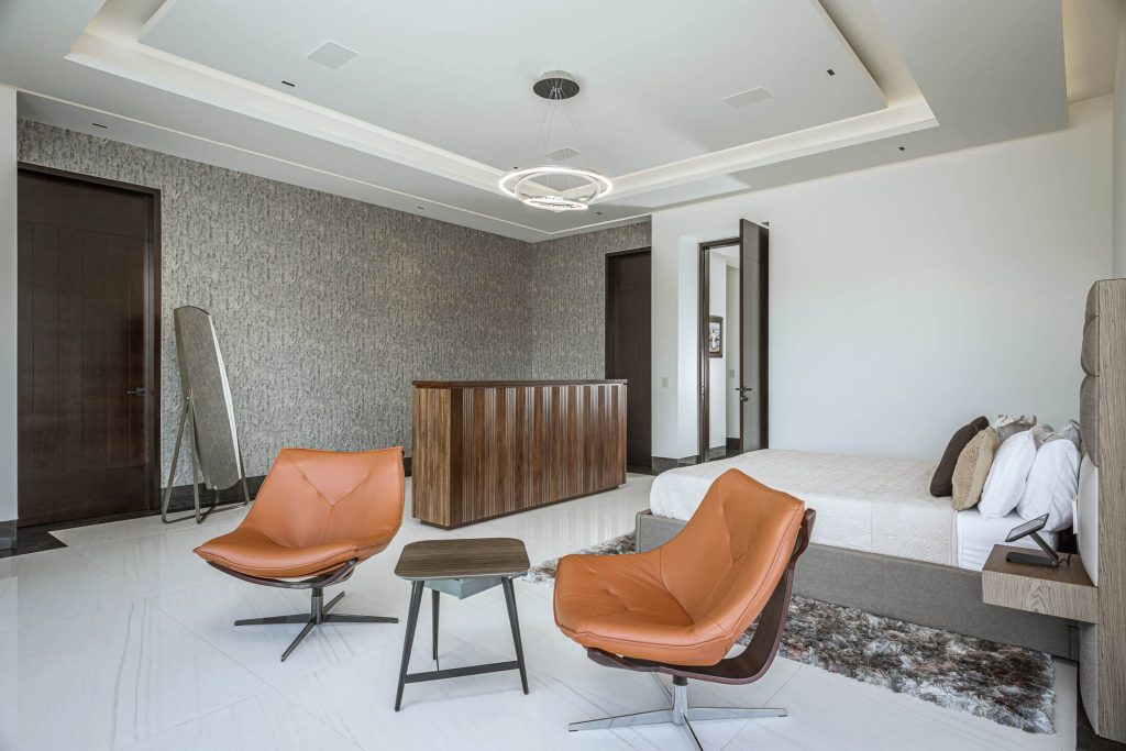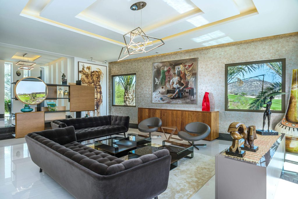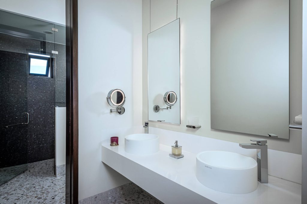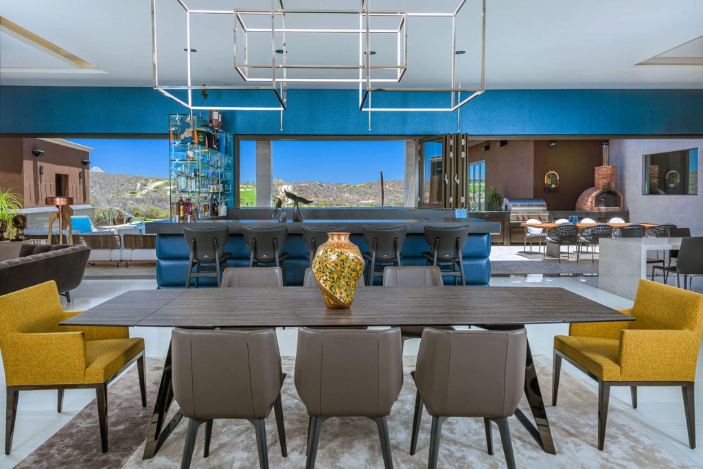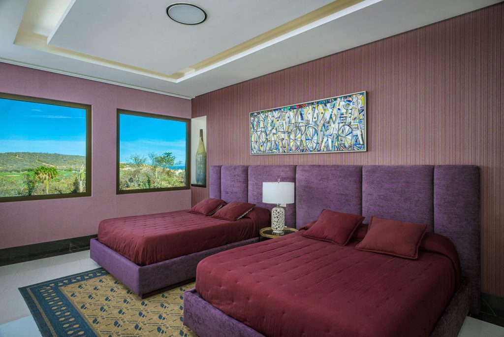 Stepping outside, guests are greeted with an outdoor kitchen complete with a gas BBQ grill and pizza oven. The outdoor lounge and dining area offer stunning views of the nearby golf course and the rolling hillside, while the private swimming pool and Jacuzzi promise relaxation and serenity. Exclusive access to the Puerto Los Cabos Beach Club – complete with an infinity-edge pool, sports bar, and beach access – and proximity to the marina underscore the villa’s allure. The secure, gated community of El Altillo further elevates the appeal of this upscale Puerto Los Cabos accommodation.