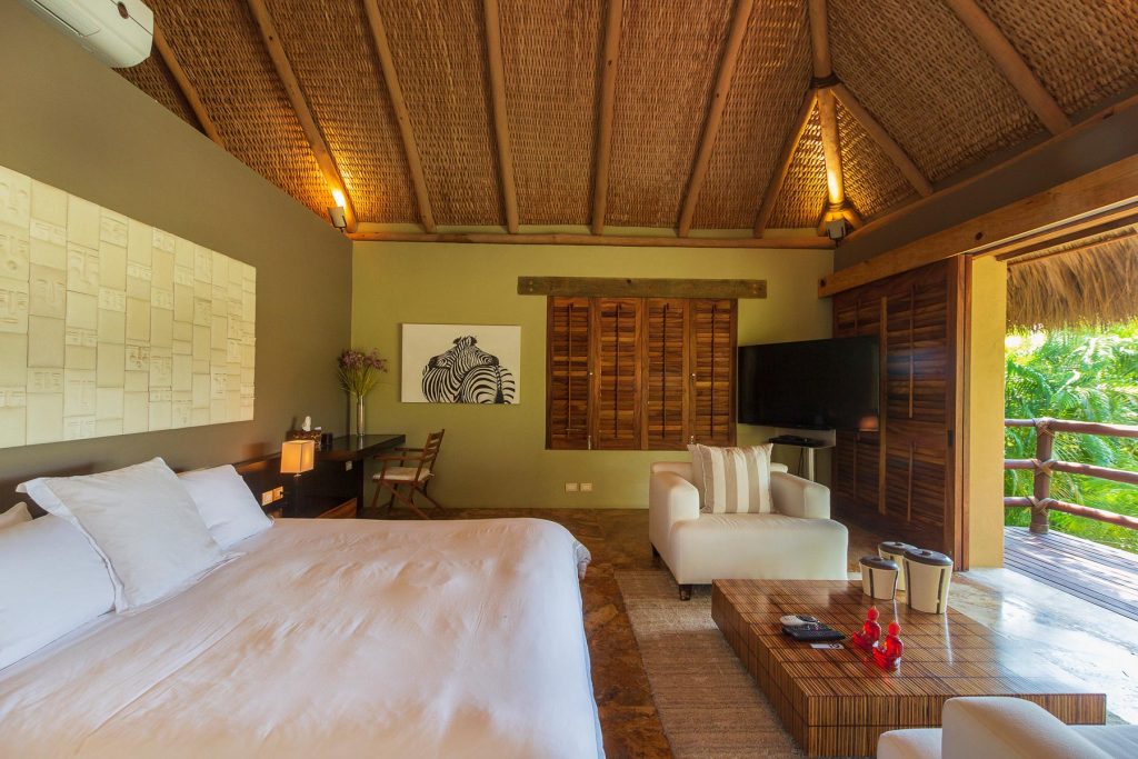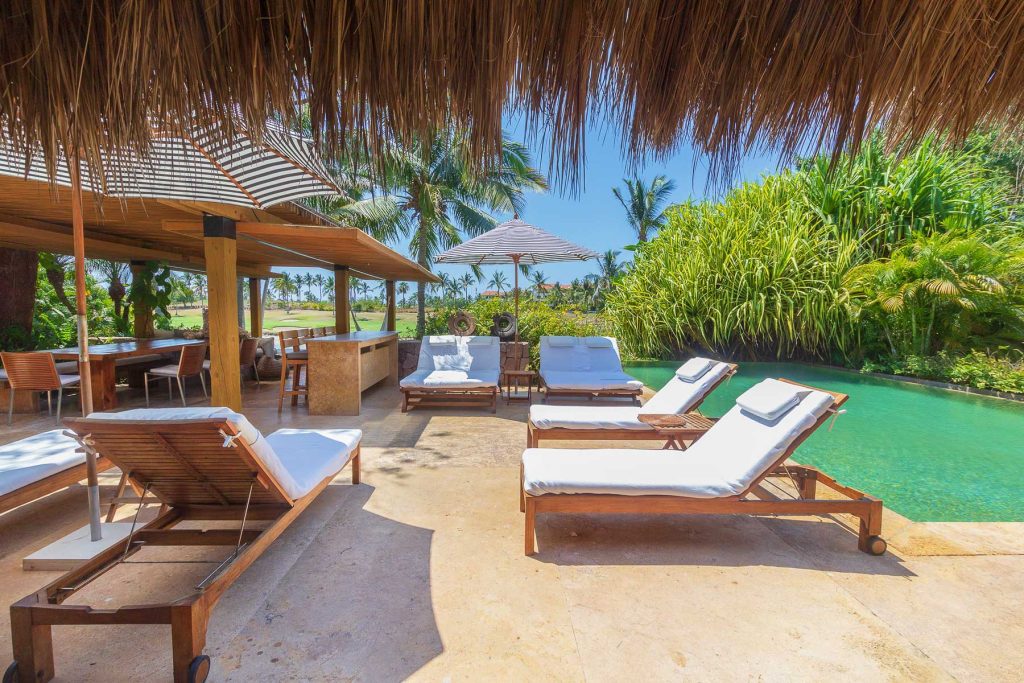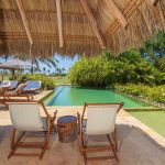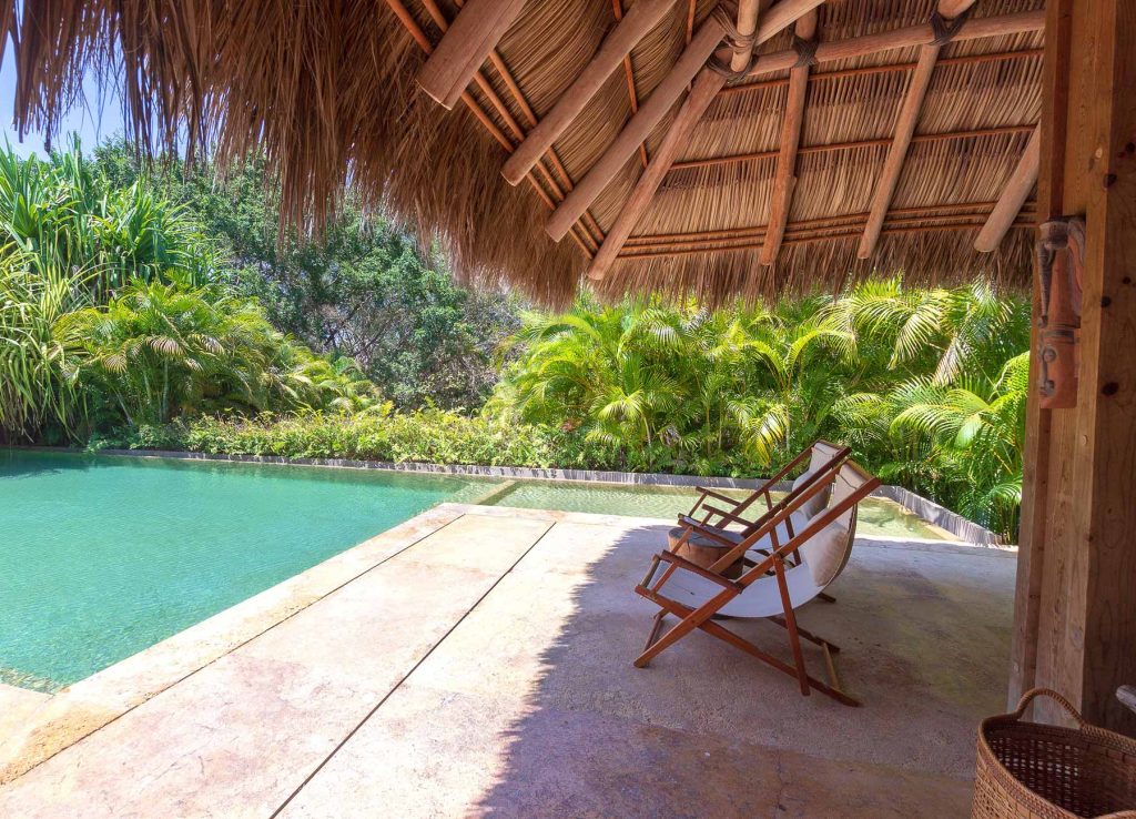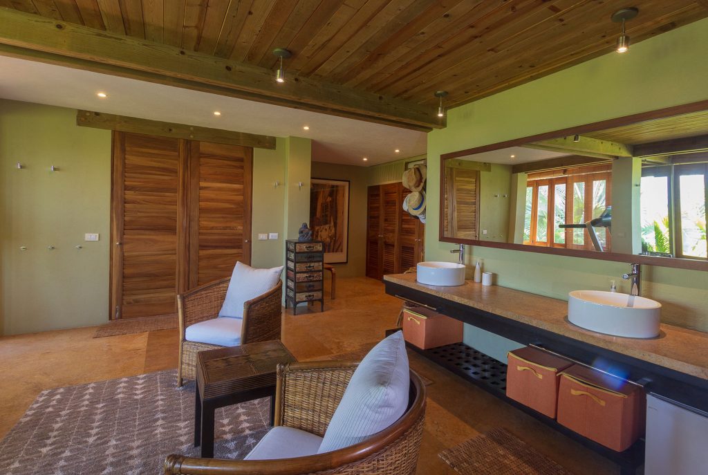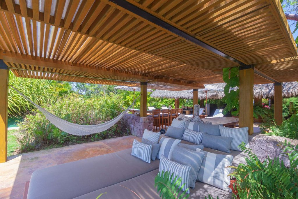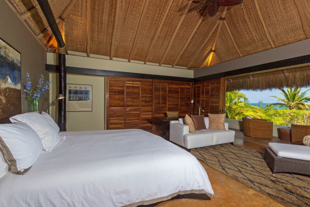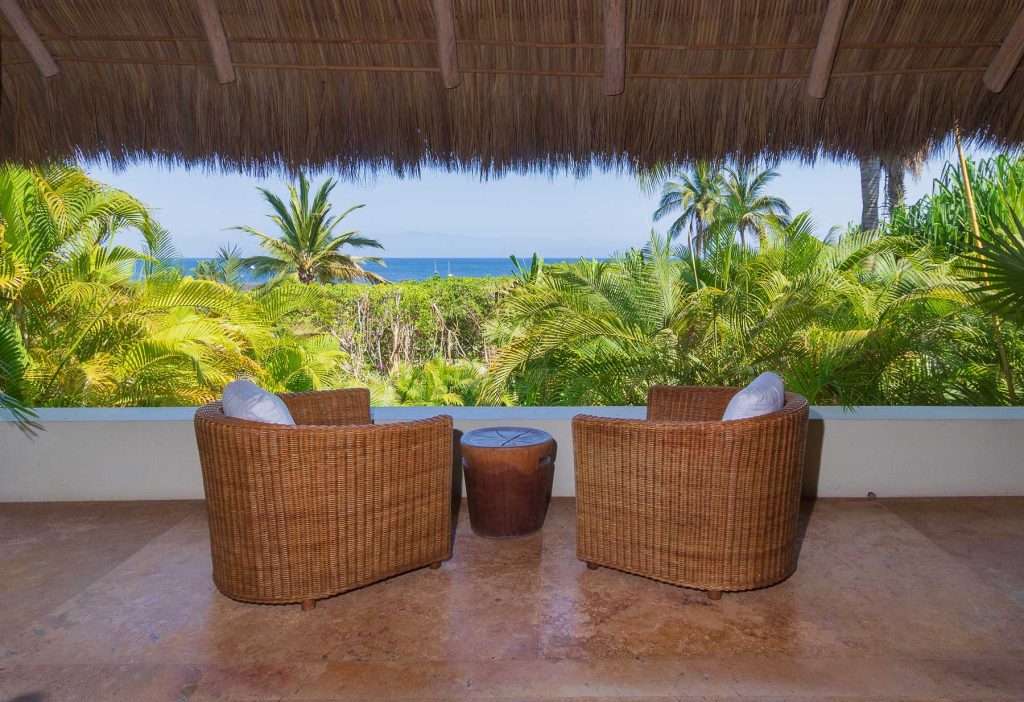 Vientos del Mar, oceanfront residences in Punta Mita, showcases the architectural brilliance of celebrated architects Alfonso Lopez Baz and Javier Calleja. Located within the gated Punta Mita Residential Community in Lagos del Mar, this luxury villa emphasizes natural materials like wood, marble, and natural stones, topped with palm leaves that add to the home’s character. Offering 8,000 square feet of open and flowing living space, it features rich hardwoods, Travertine marble, hand-trawled stucco, and premium kitchen appliances.