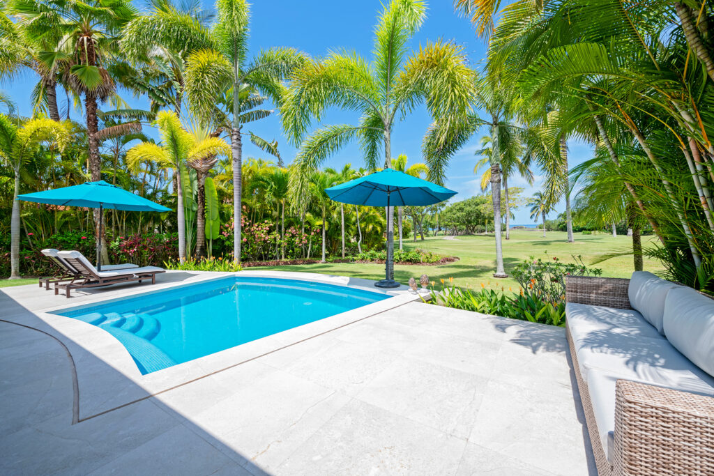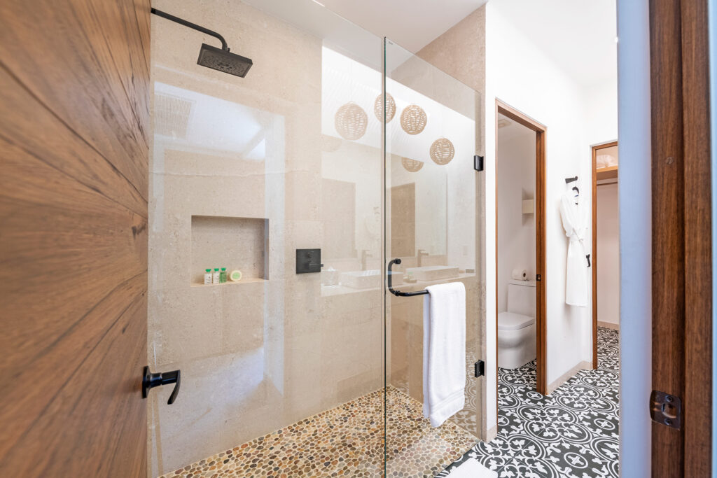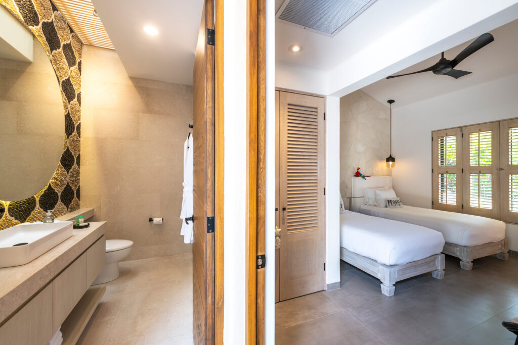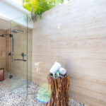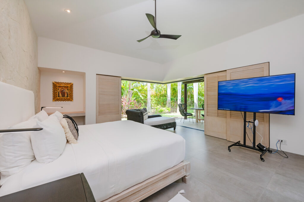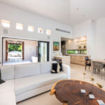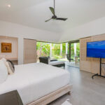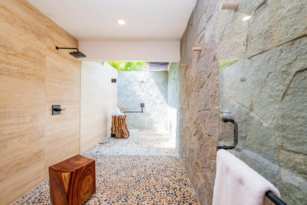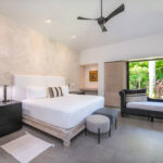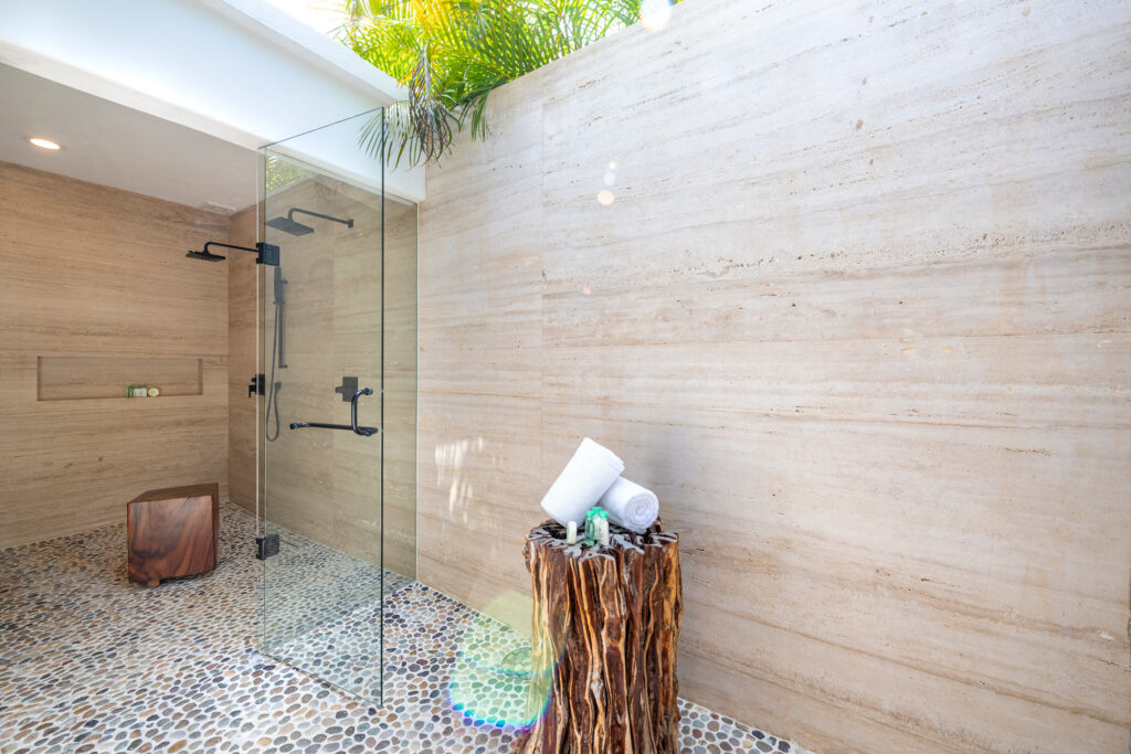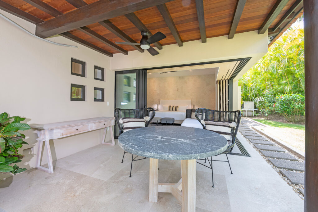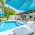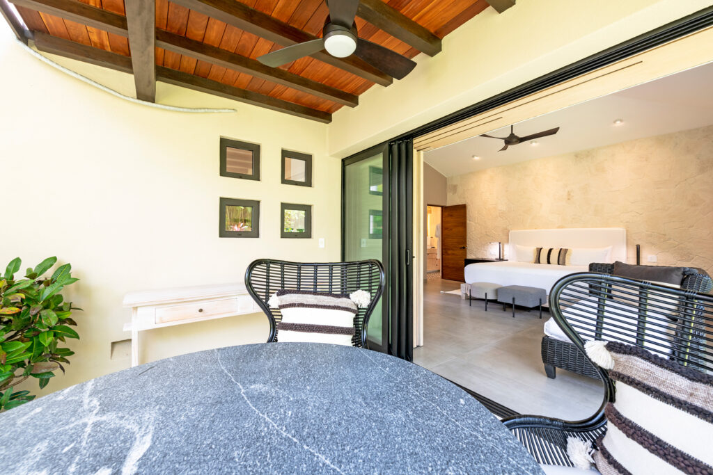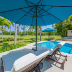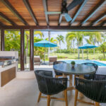 The open-concept layout flows seamlessly from the gourmet kitchen and dining area to a spacious, partially covered terrace—complete with a private pool for sun-soaked afternoons or tranquil evenings. Each bedroom features its own en-suite bath and generous walk-in closet, while the Master Suite elevates the experience with two private patios, including one with an outdoor shower for a true tropical escape.