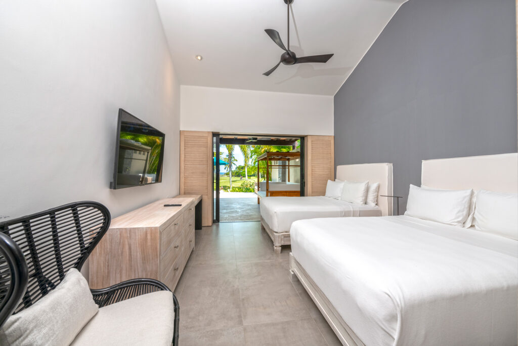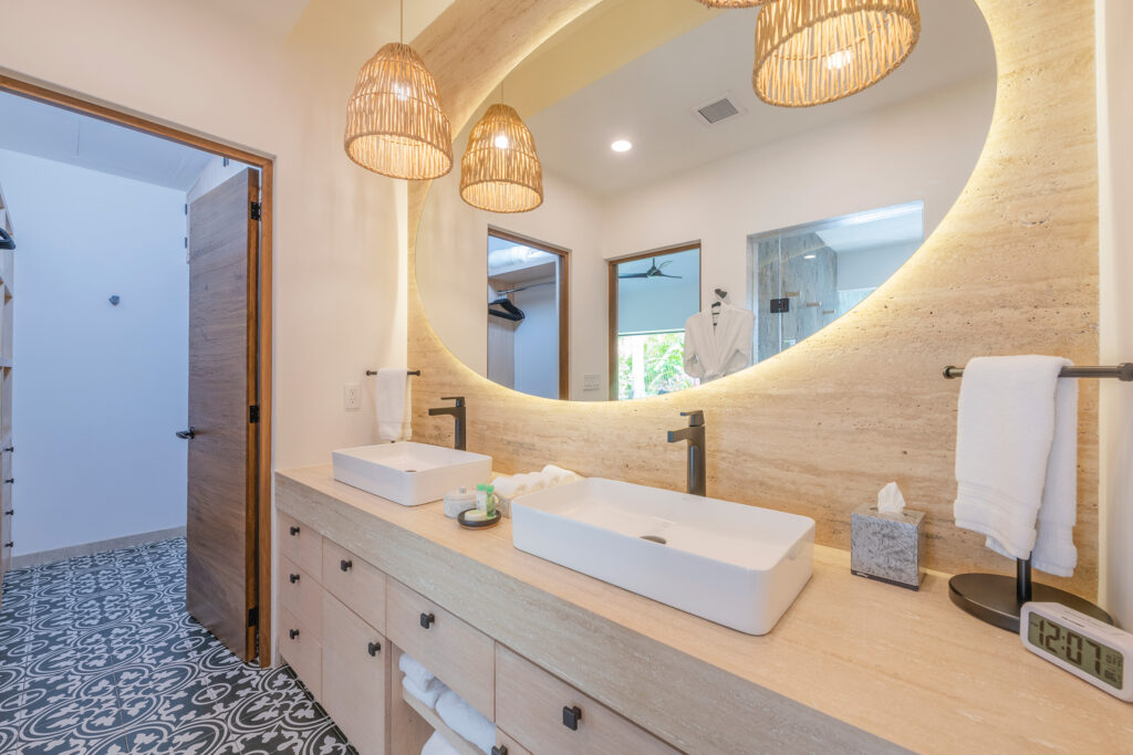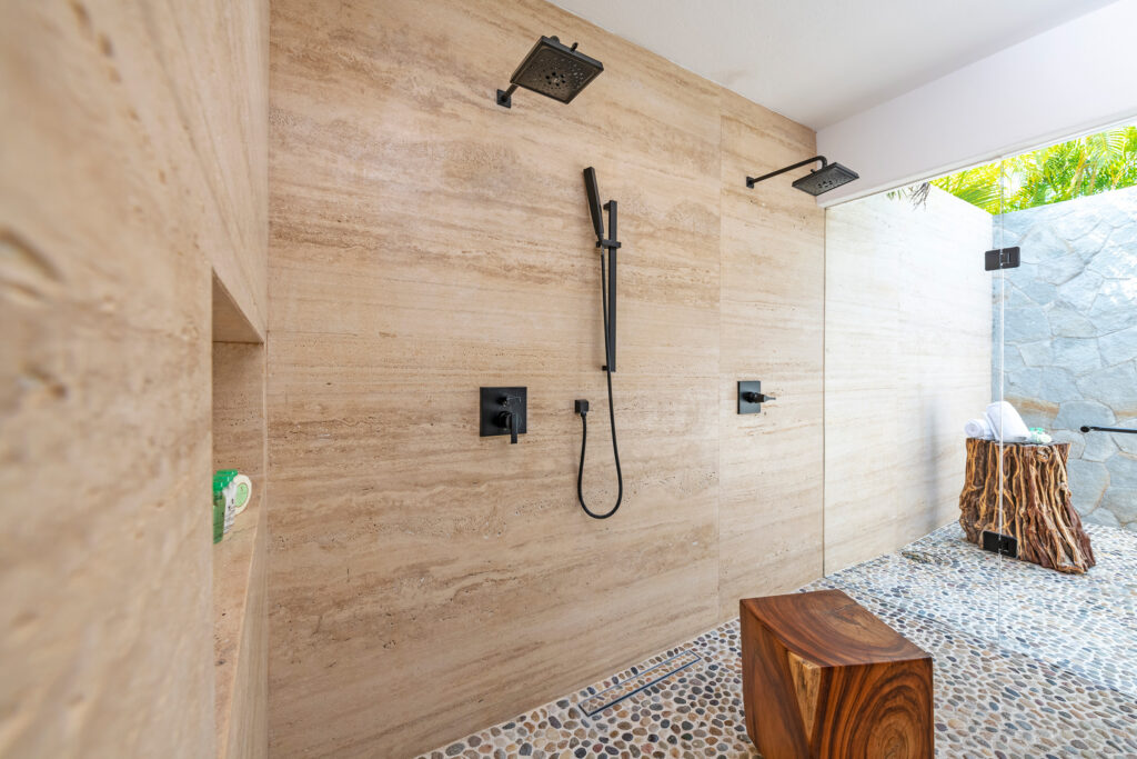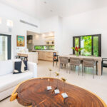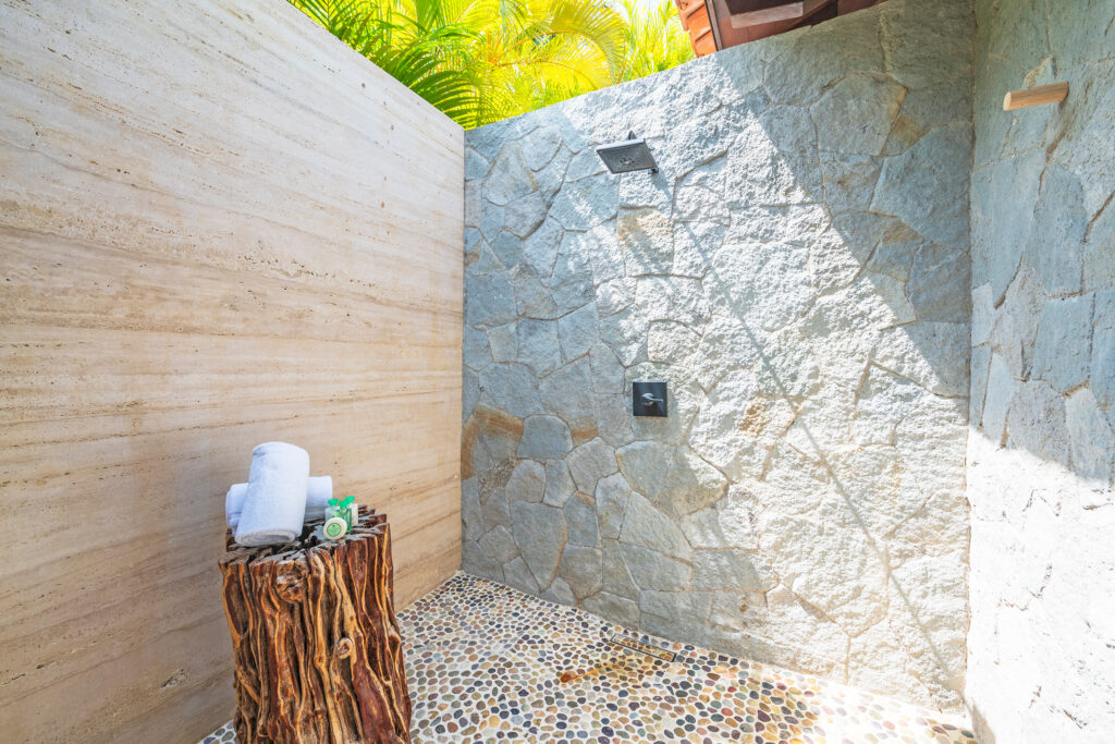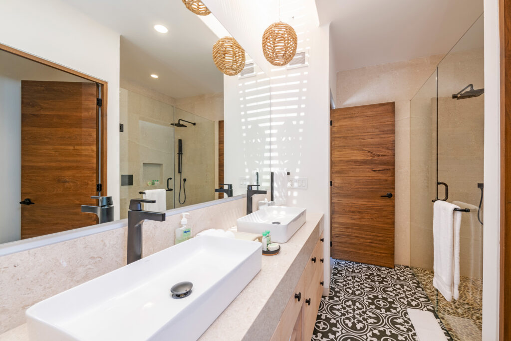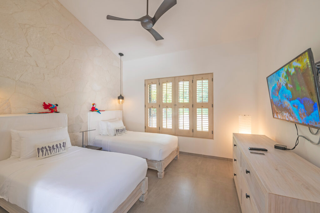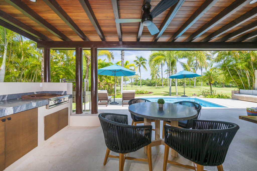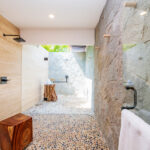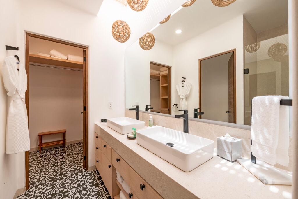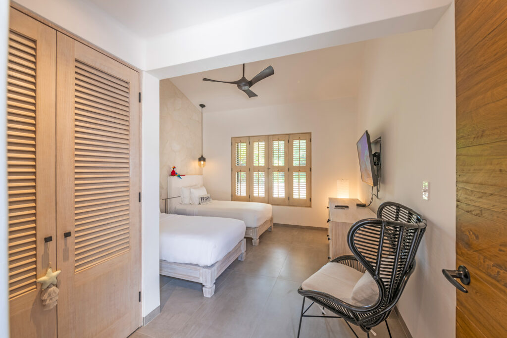 The open-concept layout flows seamlessly from the gourmet kitchen and dining area to a spacious, partially covered terrace—complete with a private pool for sun-soaked afternoons or tranquil evenings. Each bedroom features its own en-suite bath and generous walk-in closet, while the Master Suite elevates the experience with two private patios, including one with an outdoor shower for a true tropical escape.