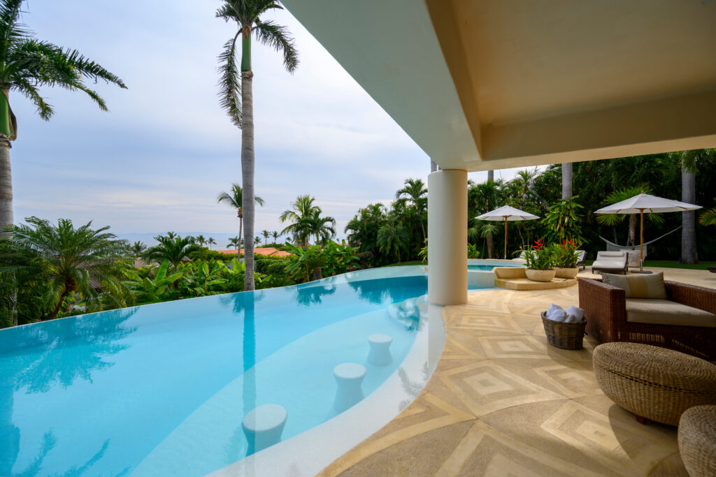 Nestled on a half-acre within the prestigious Lagos del Mar enclave of Punta Mita Resort, Villa Alamanda is a 9,500 sq. ft. estate that blends luxurious living with breathtaking natural beauty. With an 85-foot infinity pool as its centerpiece, the villa offers sweeping views of the Pacific Ocean and Puerto Vallarta in the distance—creating a serene, picture-perfect backdrop.