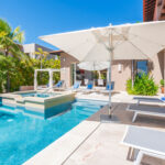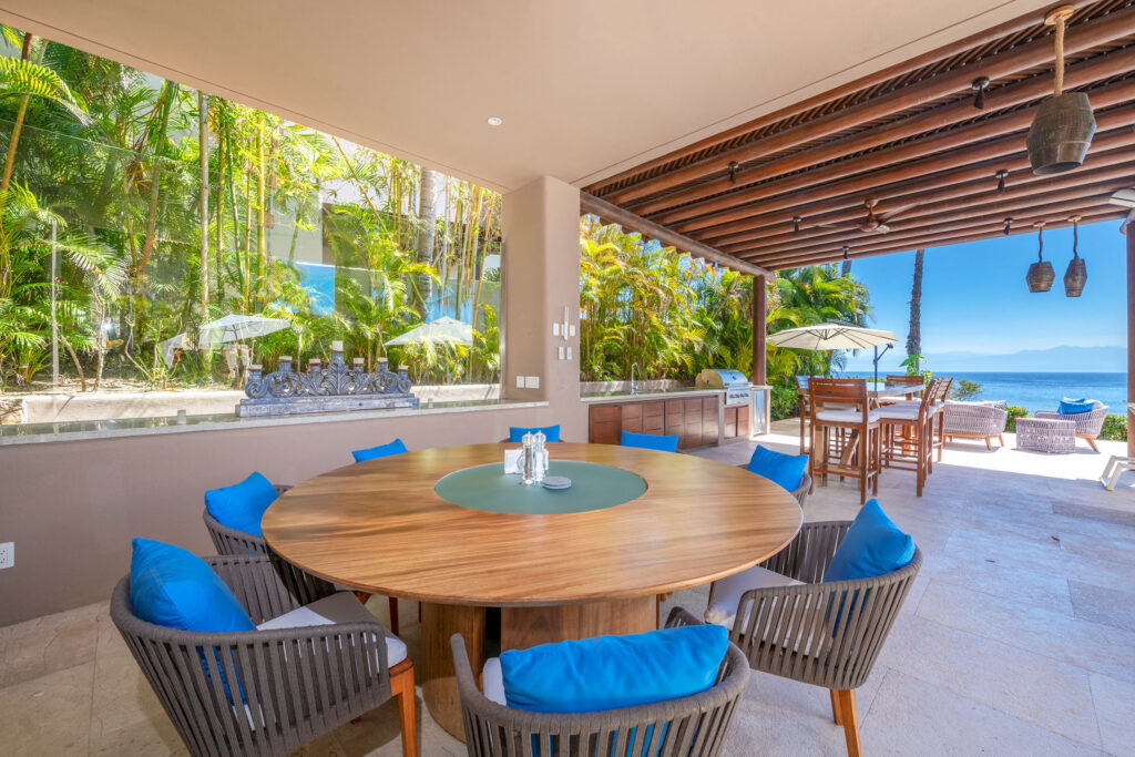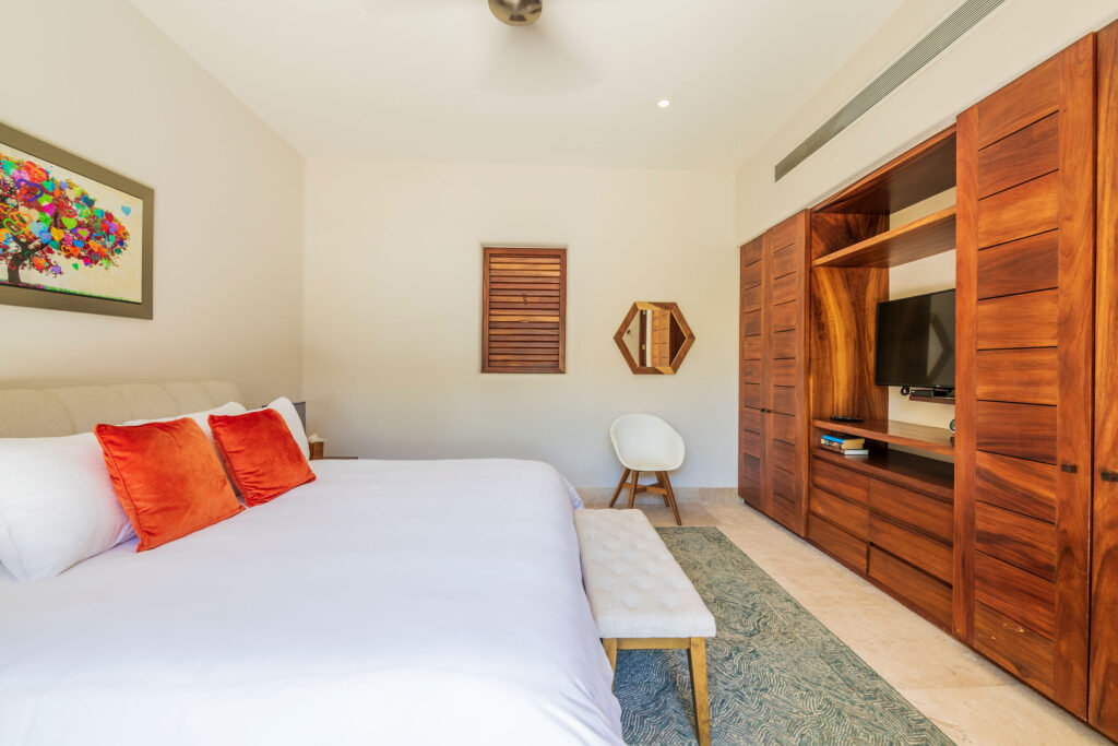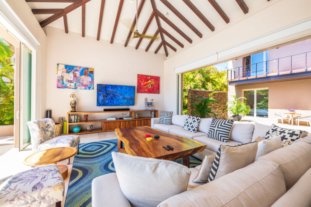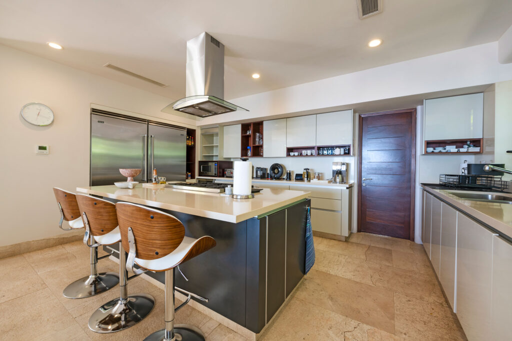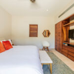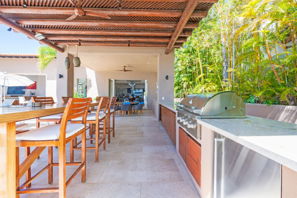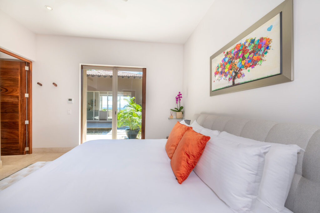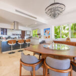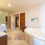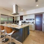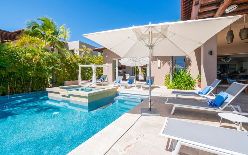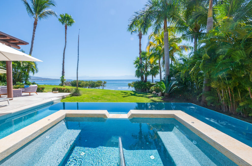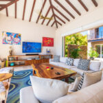 Located within the private gates of Punta Mita, this sleek and modern villa is nestled in the exclusive El Encanto community—offering sweeping views of the Jack Nicklaus Bahia Golf Course framed by swaying palm trees and tropical greenery. Designed with clean lines and refined style, the residence features four spacious bedrooms, each with its own en-suite bathroom, ensuring a luxurious and comfortable stay for every guest. Outdoor living is at the heart of the experience, with a stunning infinity pool and open-air lounge area where you can take in the panoramic vistas from sunrise to starlight.