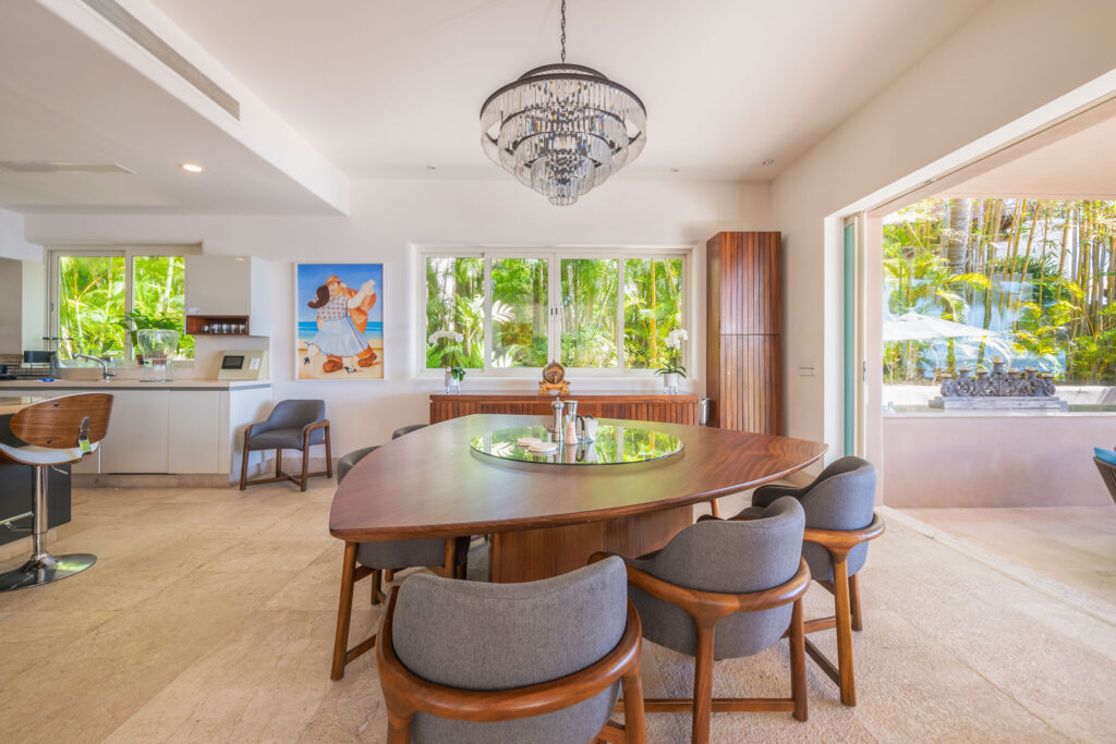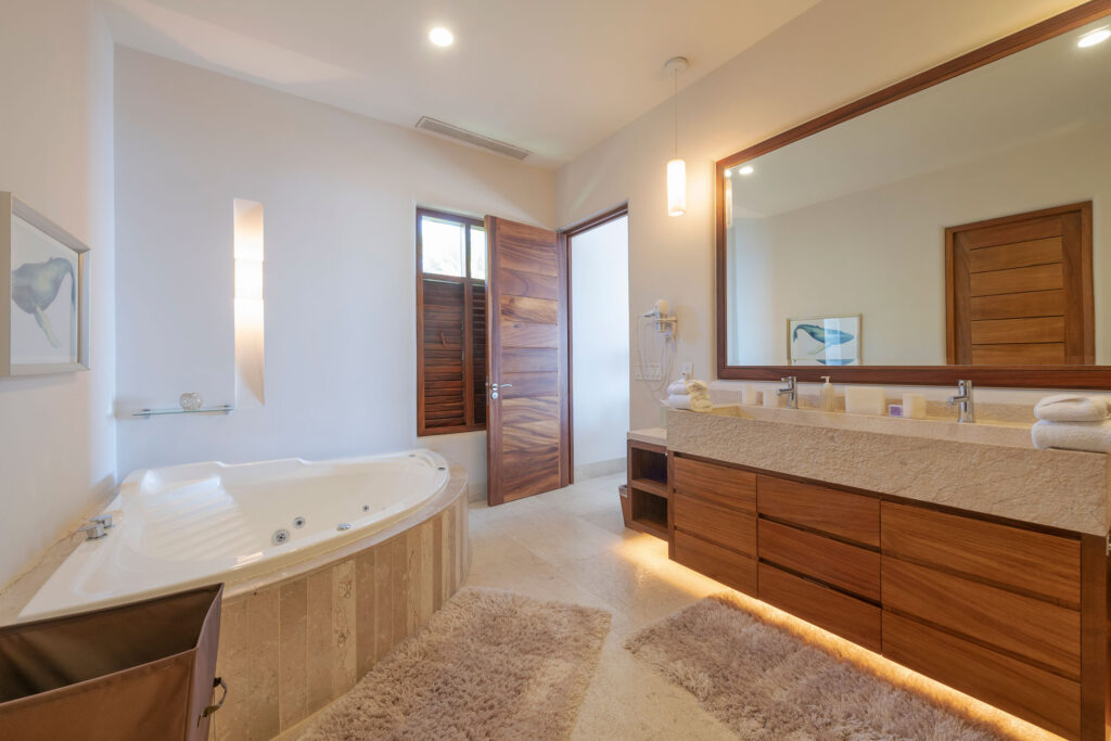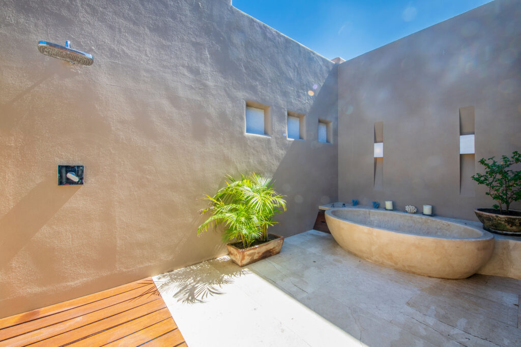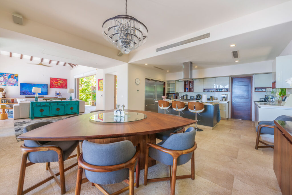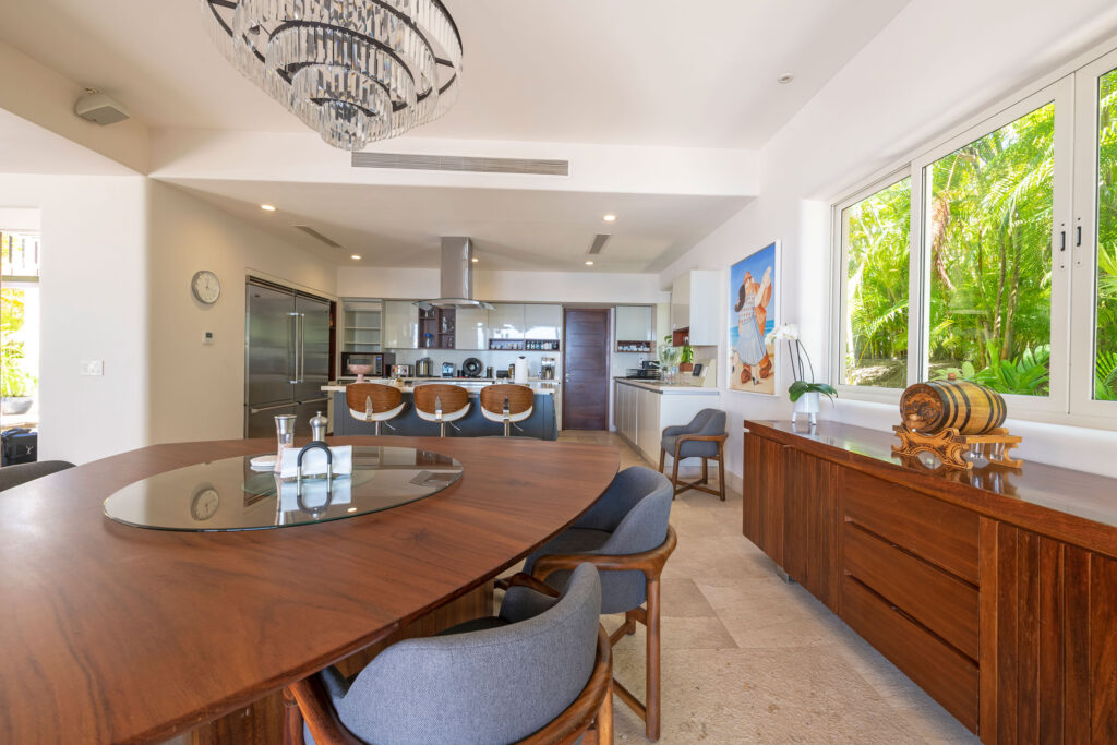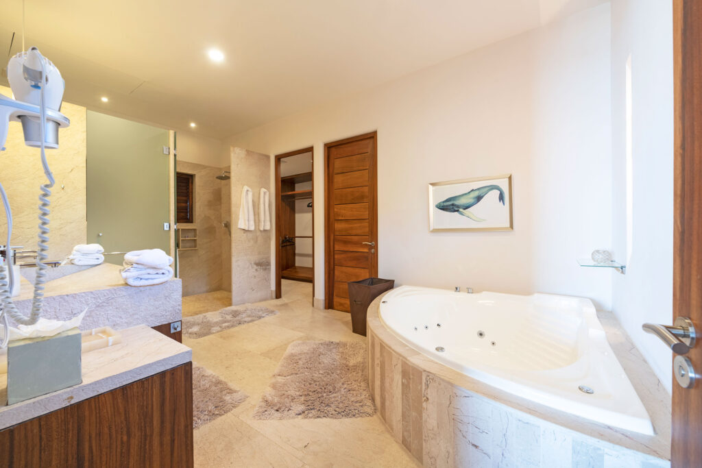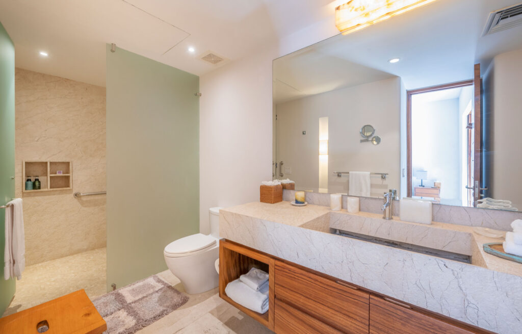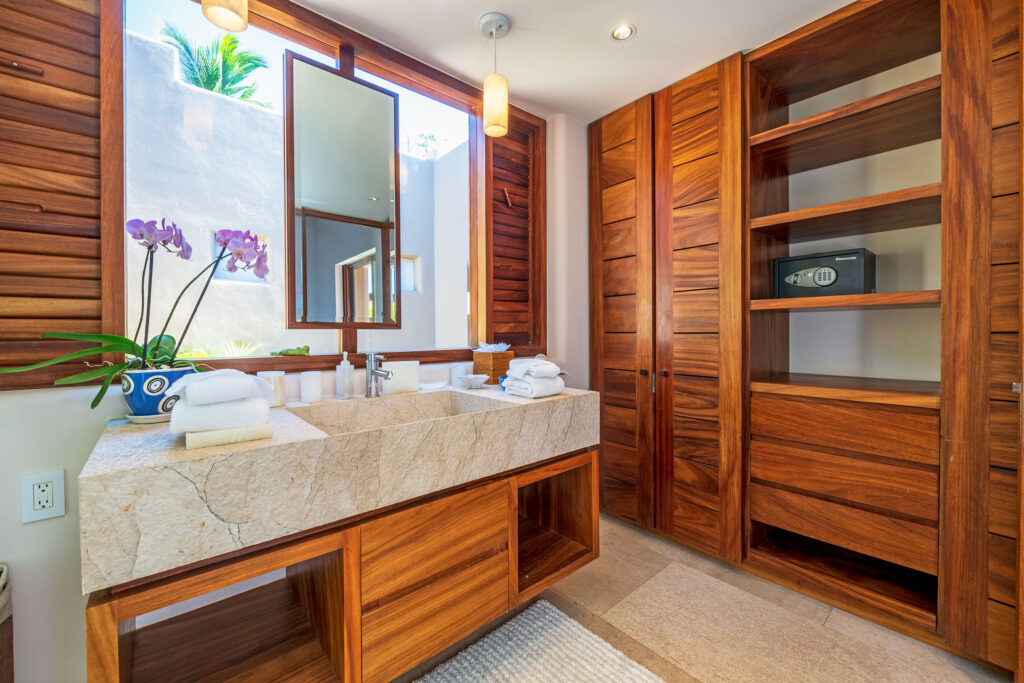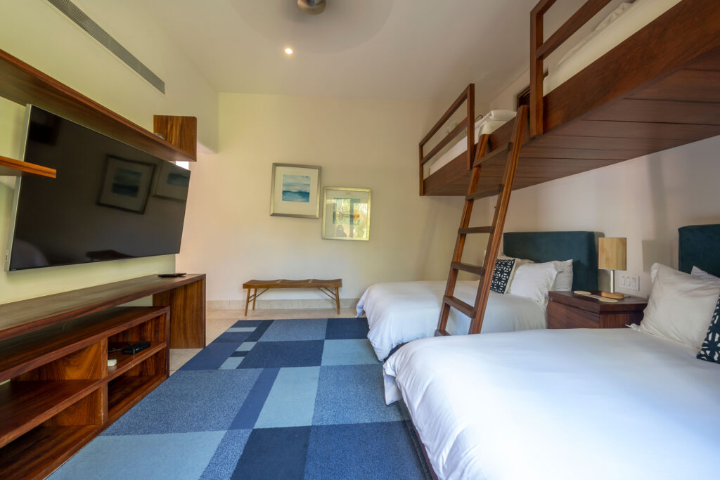 Located within the private gates of Punta Mita, this sleek and modern villa is nestled in the exclusive El Encanto community—offering sweeping views of the Jack Nicklaus Bahia Golf Course framed by swaying palm trees and tropical greenery. Designed with clean lines and refined style, the residence features four spacious bedrooms, each with its own en-suite bathroom, ensuring a luxurious and comfortable stay for every guest. Outdoor living is at the heart of the experience, with a stunning infinity pool and open-air lounge area where you can take in the panoramic vistas from sunrise to starlight.