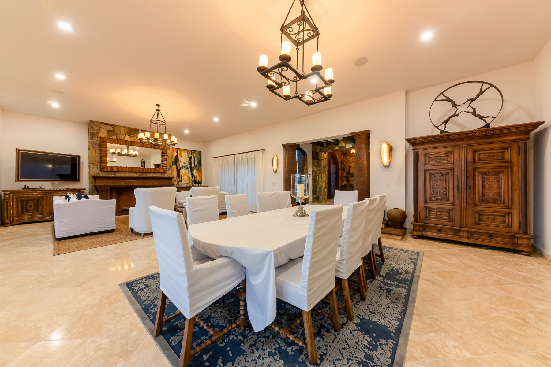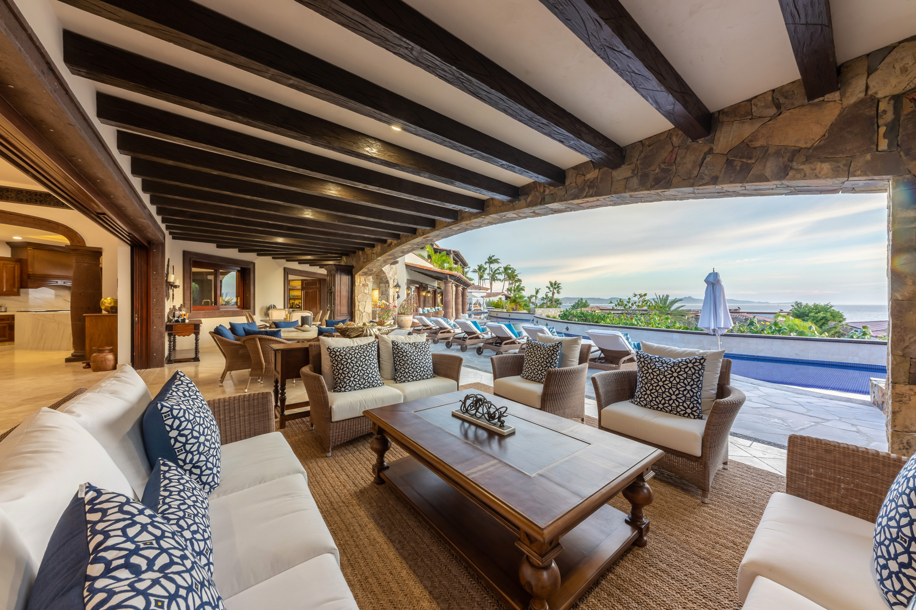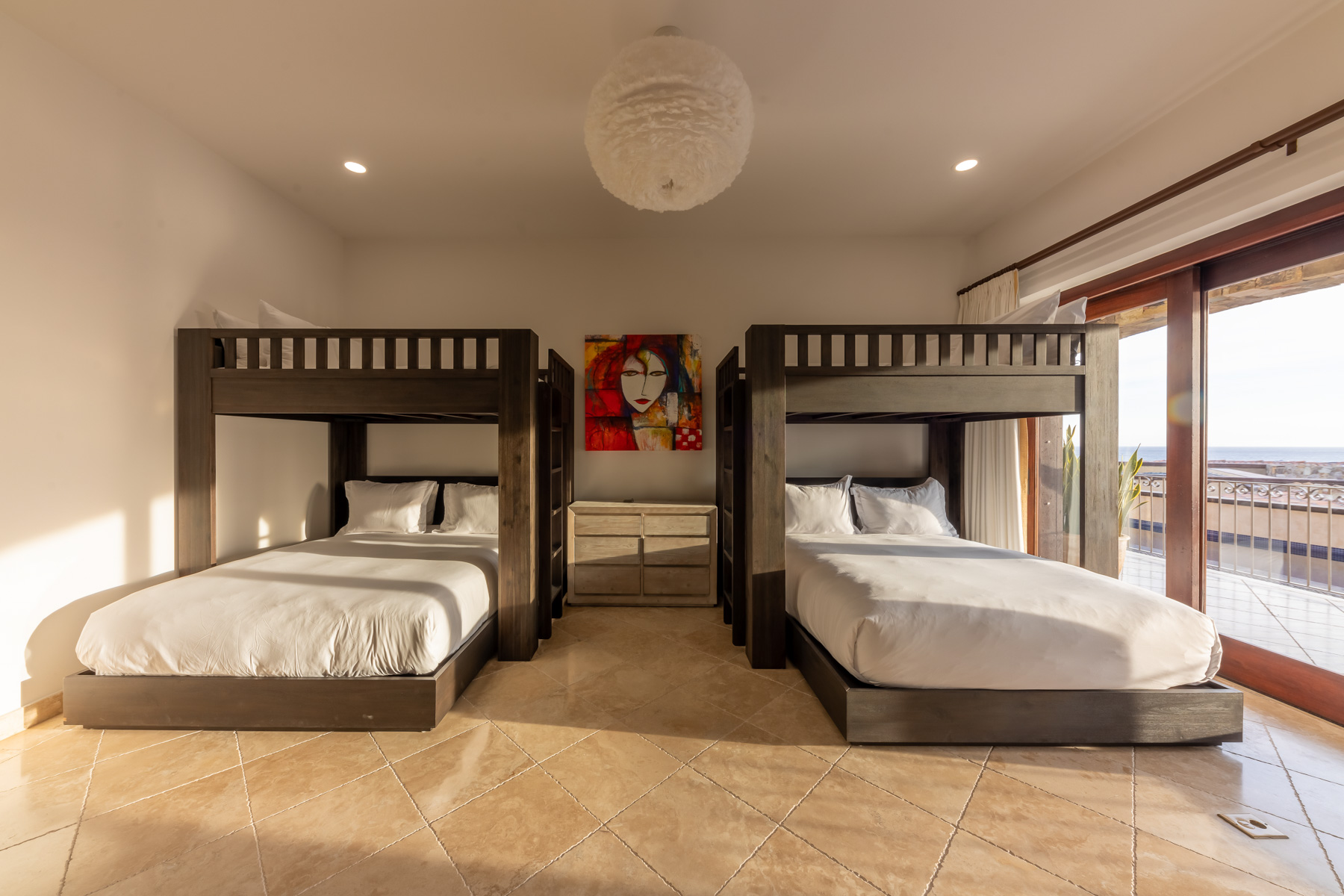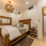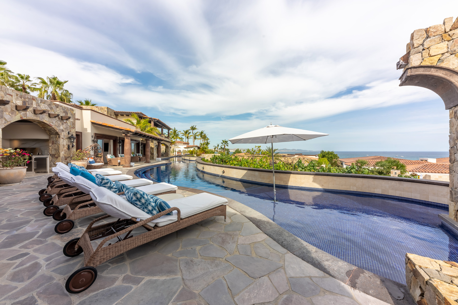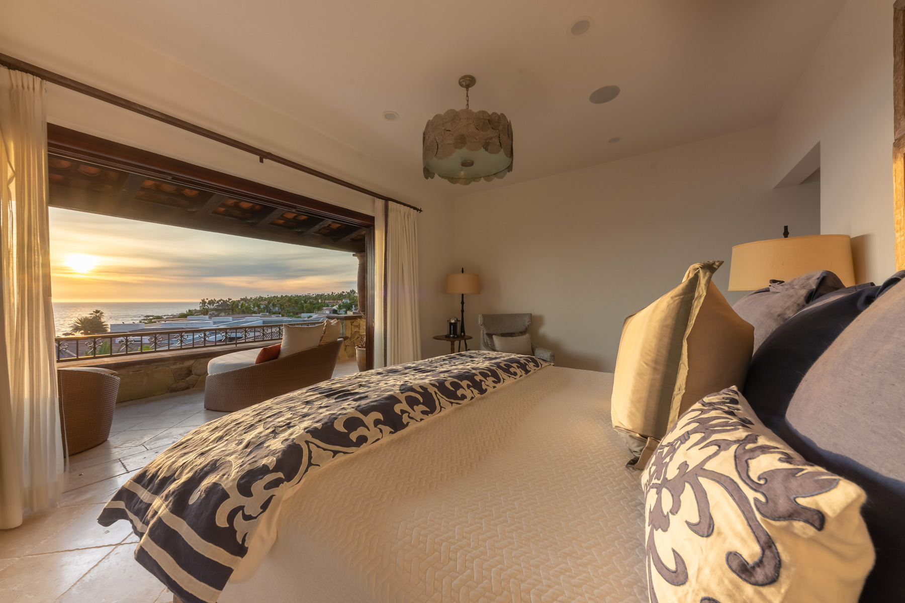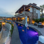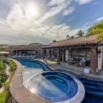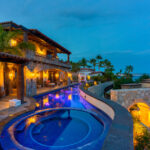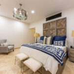 Villa Encanto is a luxurious six-bedroom, 6.5-bath mansion in Los Cabos, accommodating up to 14 guests with stunning views of the Sea of Cortez from every room. The villa features a 100-foot infinity pool with waterfalls, a sunken spa, and easy access to a private, swimmable beach. The interior boasts a fully equipped chef’s kitchen, multiple social and dining areas, and Spanish colonial design with contemporary furnishings. Each bedroom is uniquely designed for privacy and comfort, with master suites offering panoramic sea views.