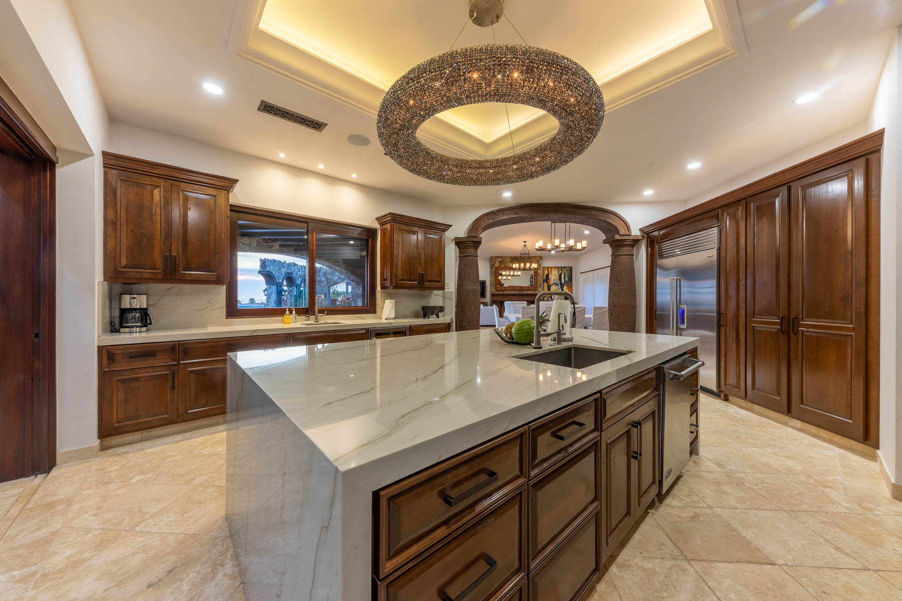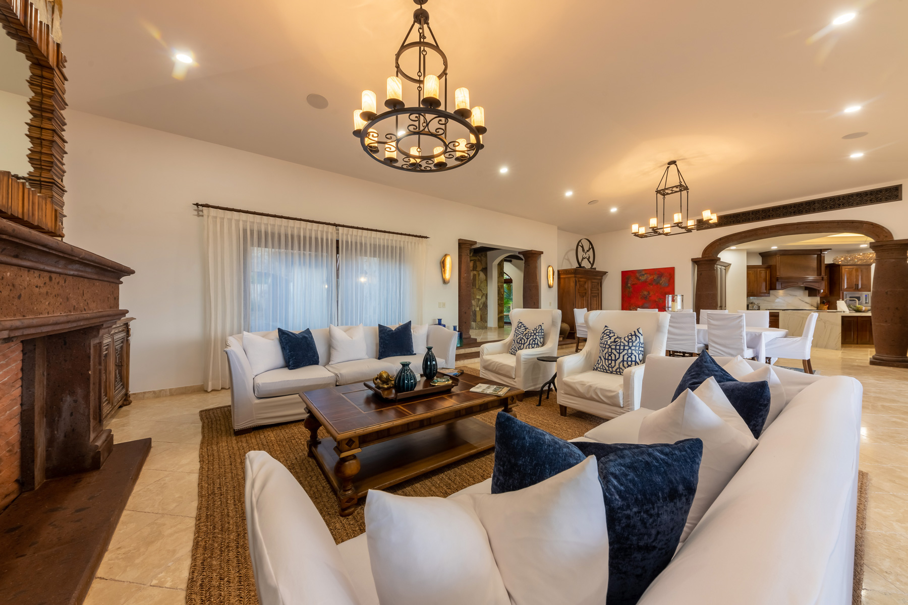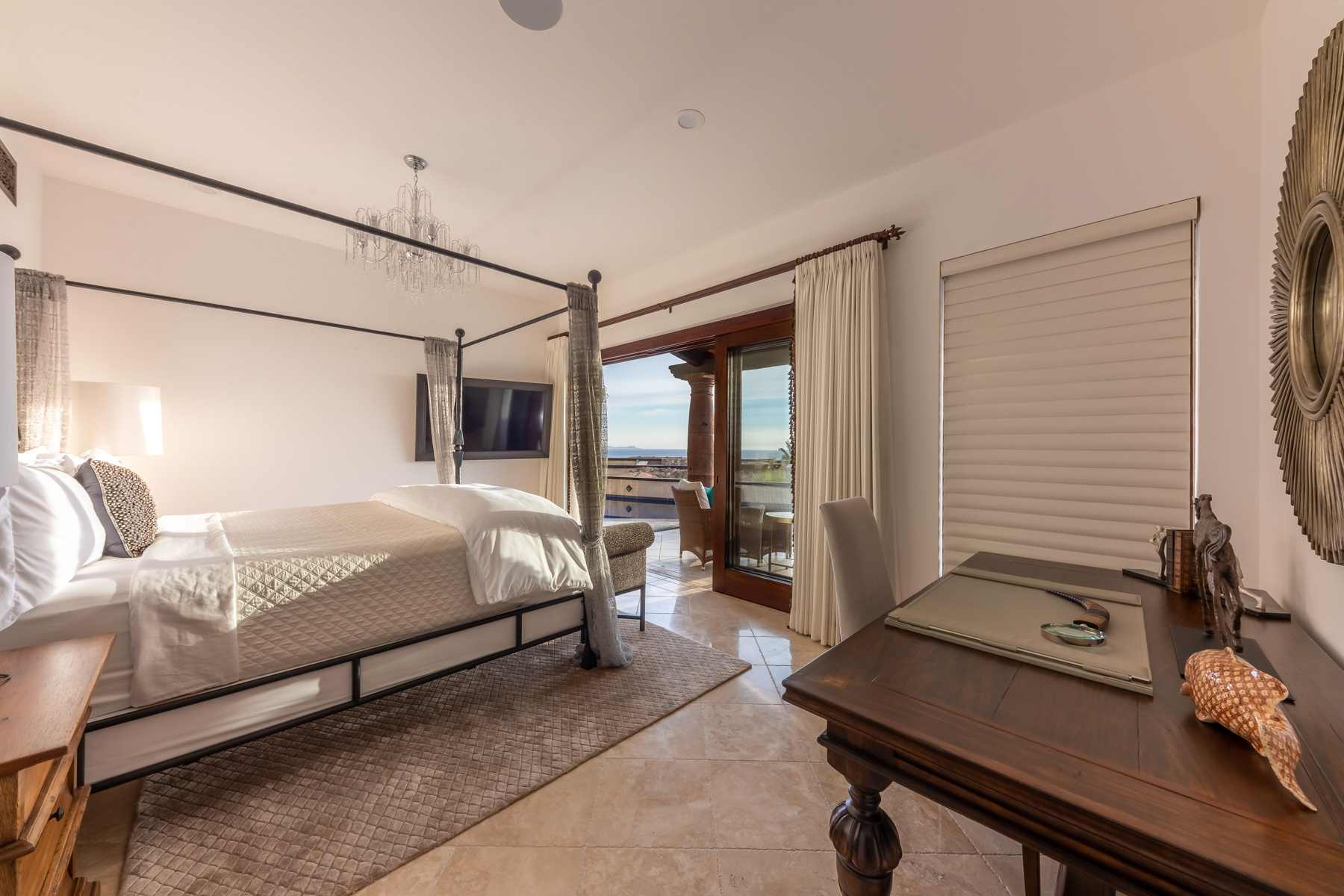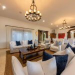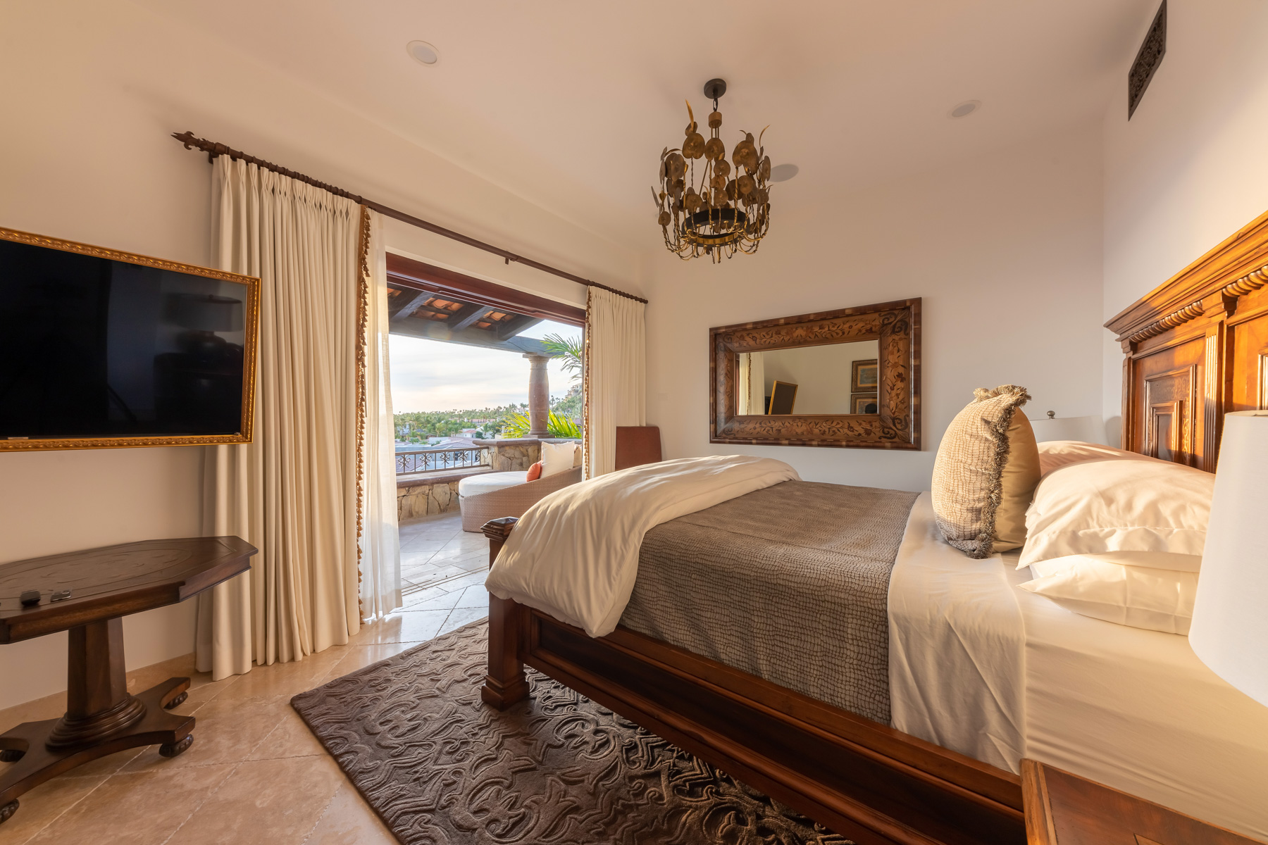 Villa Encanto is a luxurious six-bedroom, 6.5-bath mansion in Los Cabos, accommodating up to 14 guests with stunning views of the Sea of Cortez from every room. The villa features a 100-foot infinity pool with waterfalls, a sunken spa, and easy access to a private, swimmable beach. The interior boasts a fully equipped chef’s kitchen, multiple social and dining areas, and Spanish colonial design with contemporary furnishings. Each bedroom is uniquely designed for privacy and comfort, with master suites offering panoramic sea views.