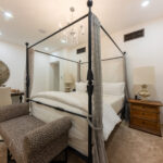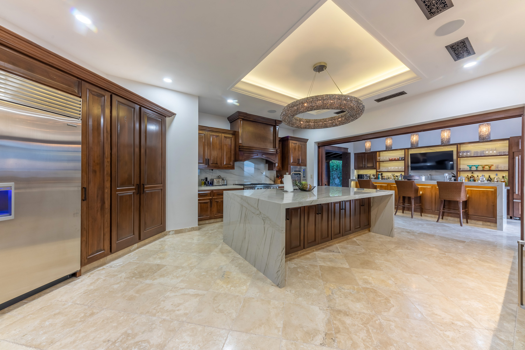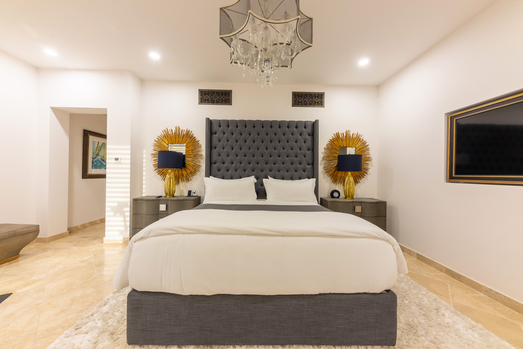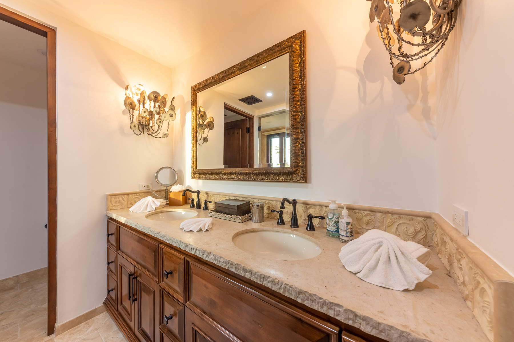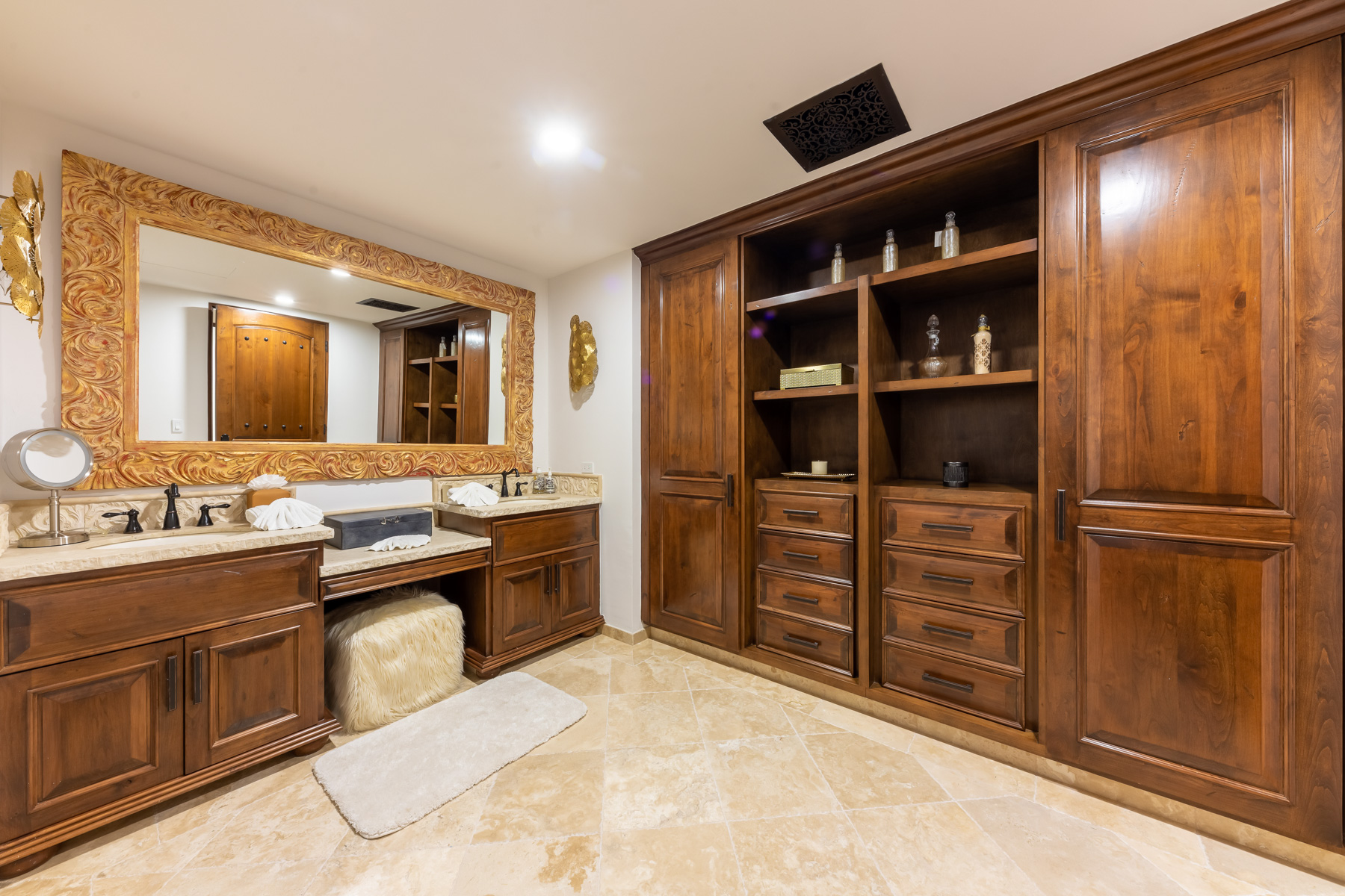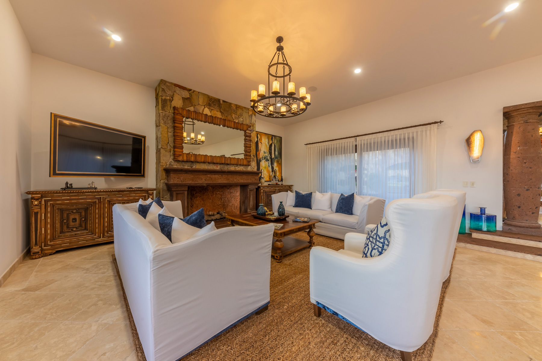 Villa Encanto is a luxurious six-bedroom, 6.5-bath mansion in Los Cabos, accommodating up to 14 guests with stunning views of the Sea of Cortez from every room. The villa features a 100-foot infinity pool with waterfalls, a sunken spa, and easy access to a private, swimmable beach. The interior boasts a fully equipped chef’s kitchen, multiple social and dining areas, and Spanish colonial design with contemporary furnishings. Each bedroom is uniquely designed for privacy and comfort, with master suites offering panoramic sea views.