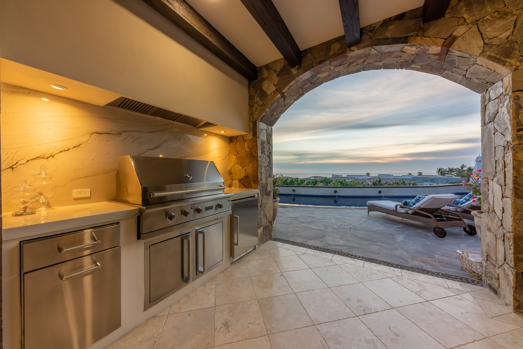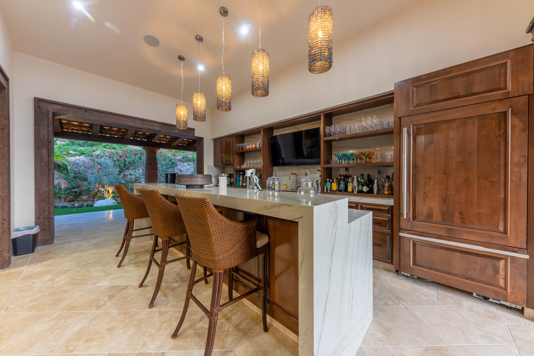 Guests can enjoy amenities such as fire pits, putting greens, and a gourmet grill and pizza oven. The villa also provides a dedicated chef and butler, ensuring a seamless and relaxing stay. Outdoor spaces blend effortlessly with the indoors, thanks to retractable walls and floor-to-ceiling glass panels, emphasizing the natural beauty of the surroundings. Whether lounging by the pool, dining al fresco, or exploring the nearby One&Only Palmilla resort, Villa Encanto offers an unparalleled vacation experience in Los Cabos.