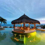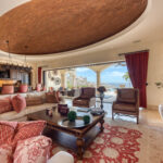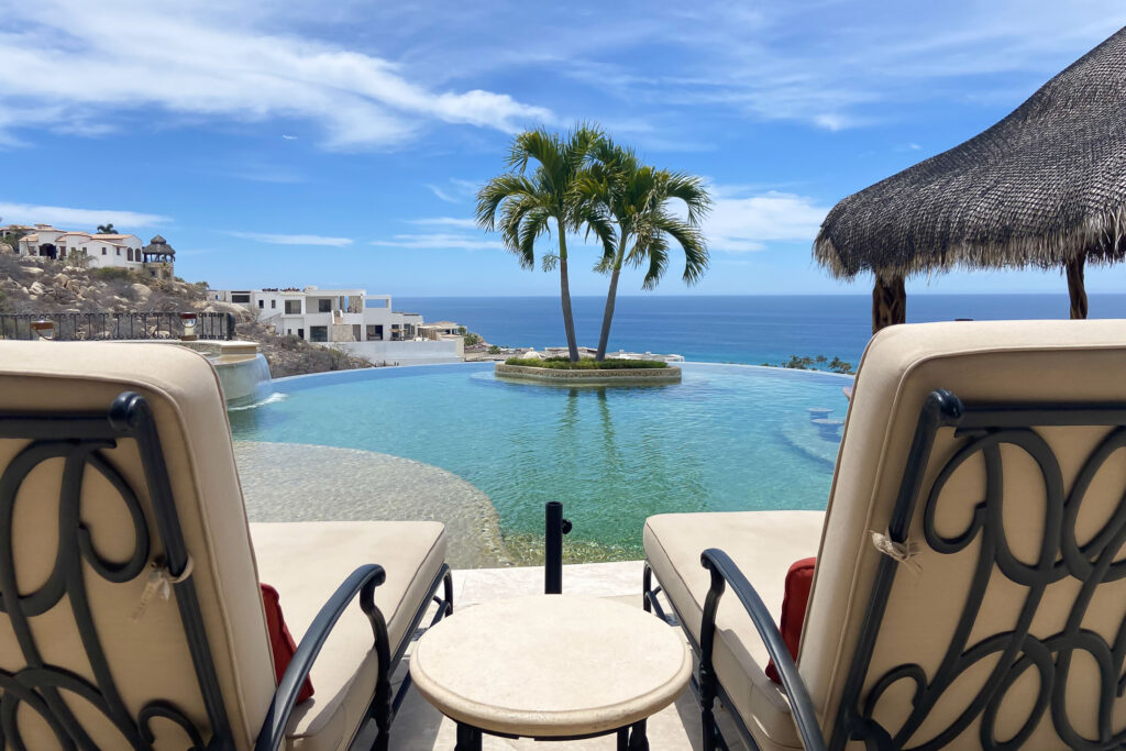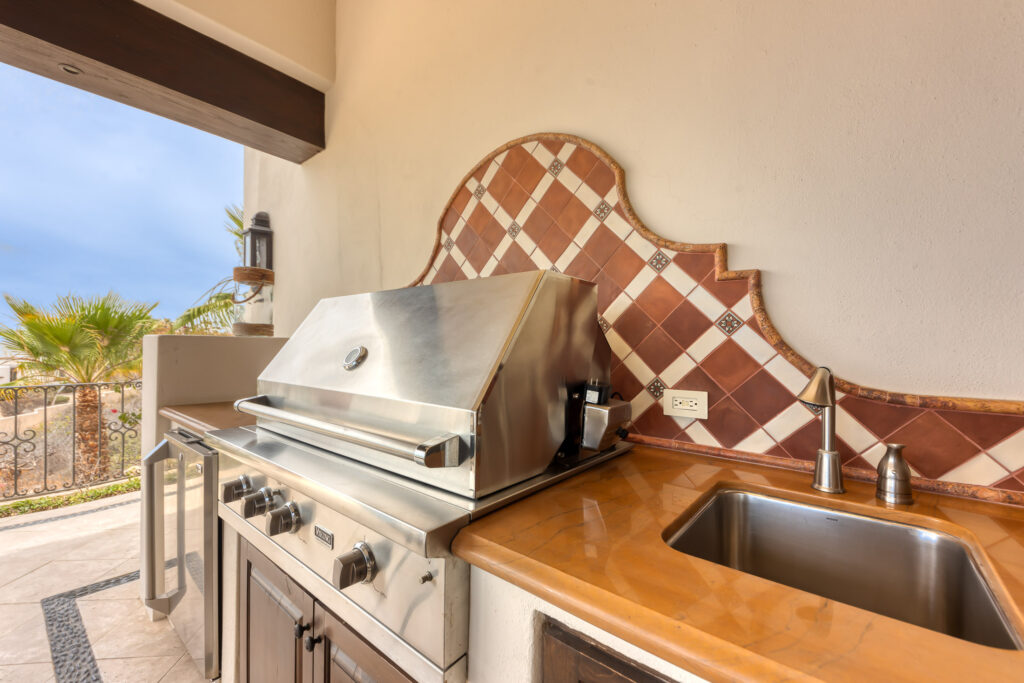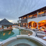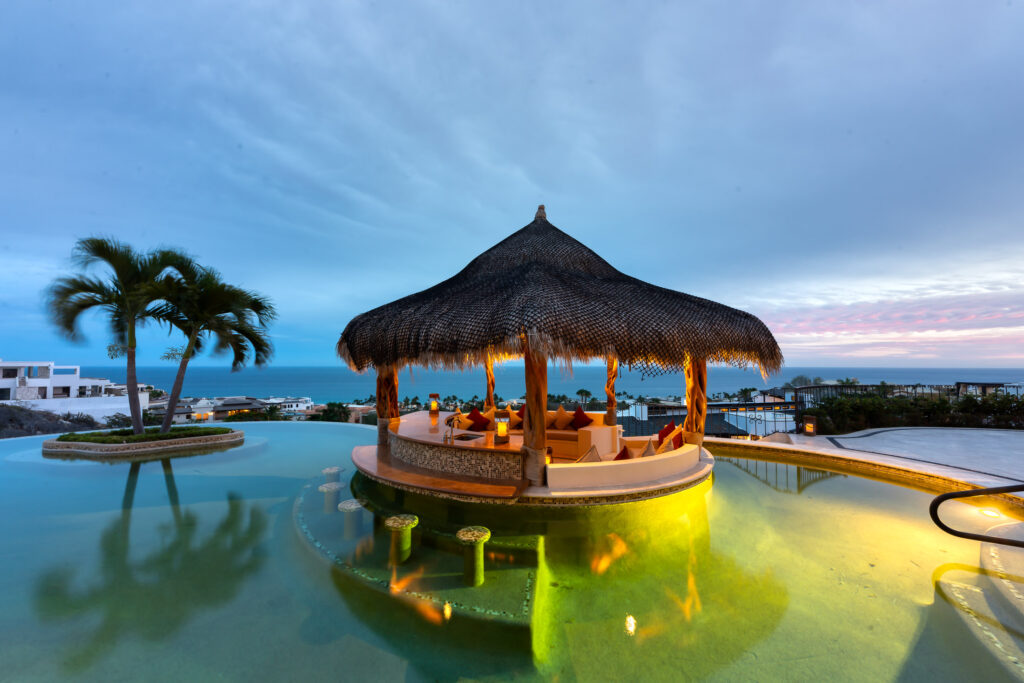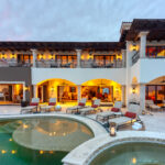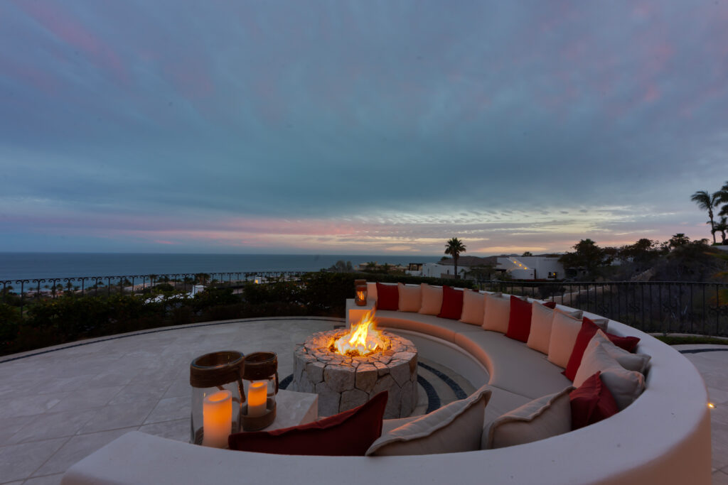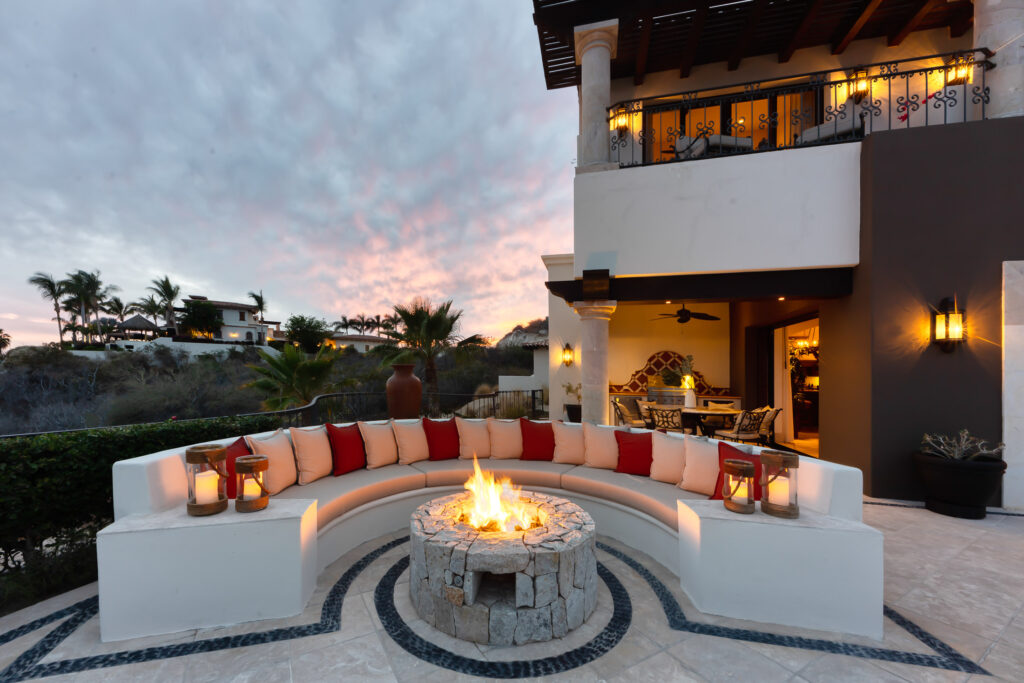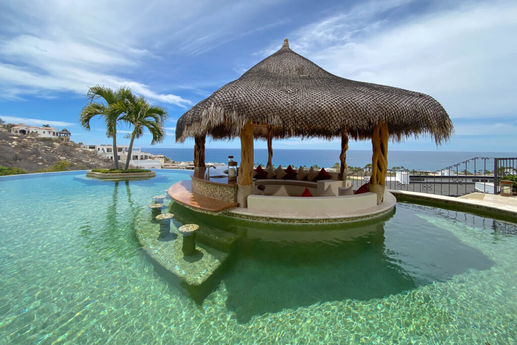 Nestled in the prestigious Fundadores community of Puerto Los Cabos, this luxurious villa is a personal resort within a resort, perfect for up to 12 guests. Perched on a hillside, it offers stunning panoramic views of the ocean, making it an ideal retreat for those seeking an upscale vacation experience. The villa’s centerpiece is a magnificent outdoor area featuring a resort-like infinity swimming pool with a swim-up bar under a thatched palapa and a lounge area. Additional luxuries include a jacuzzi tub, poolside loungers, a firepit with circular seating, and an outdoor living room complete with a barbecue and dining table, all set against the backdrop of breathtaking ocean vistas.