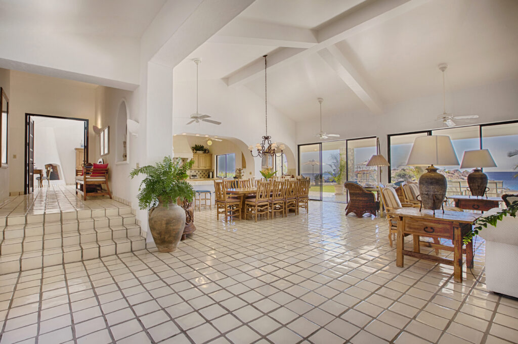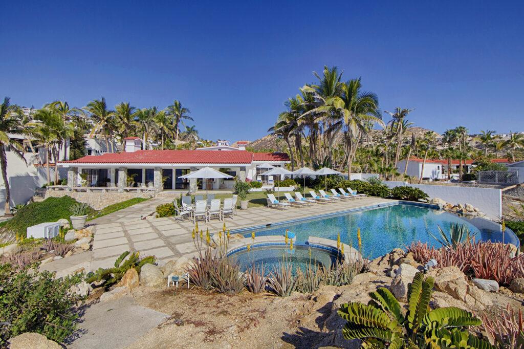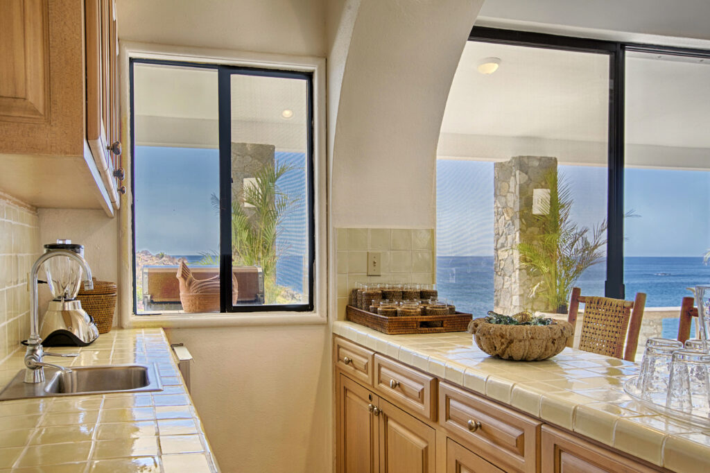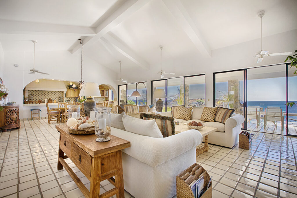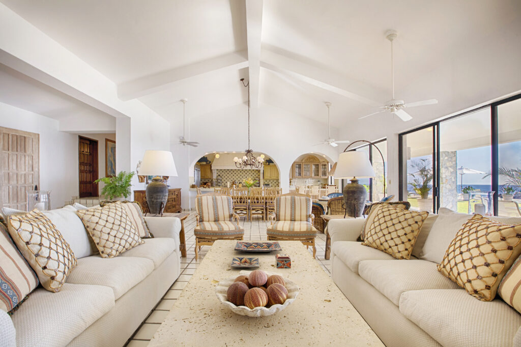 Located within the secluded Punta Bella community of Palmilla Sur, Mar de Vida Villa offers a unique blend of privacy and communal living. Designed on a single level to enhance the infusion of natural light, its layout promotes an intimate atmosphere while ensuring personal space. The villa features four private suites that converge around a central living area, boasting floor-to-ceiling glass walls that frame the stunning vistas of the Sea of Cortez.