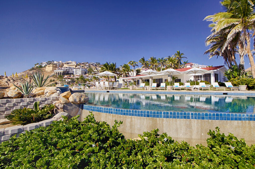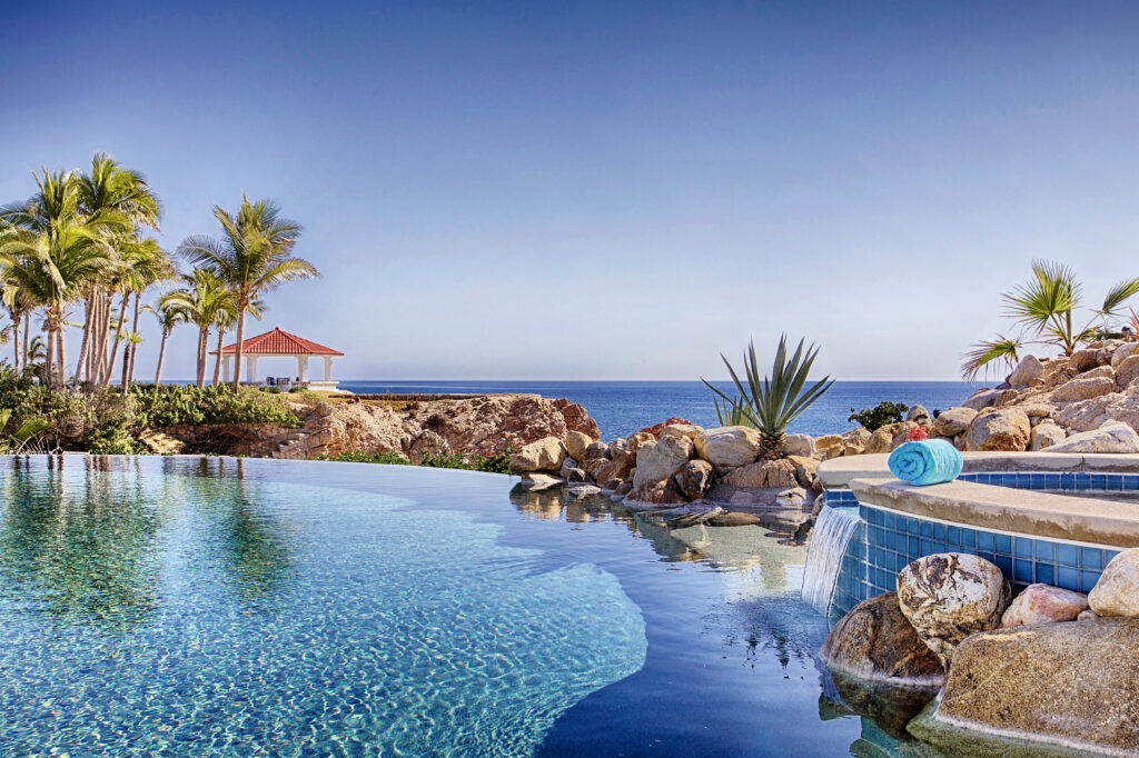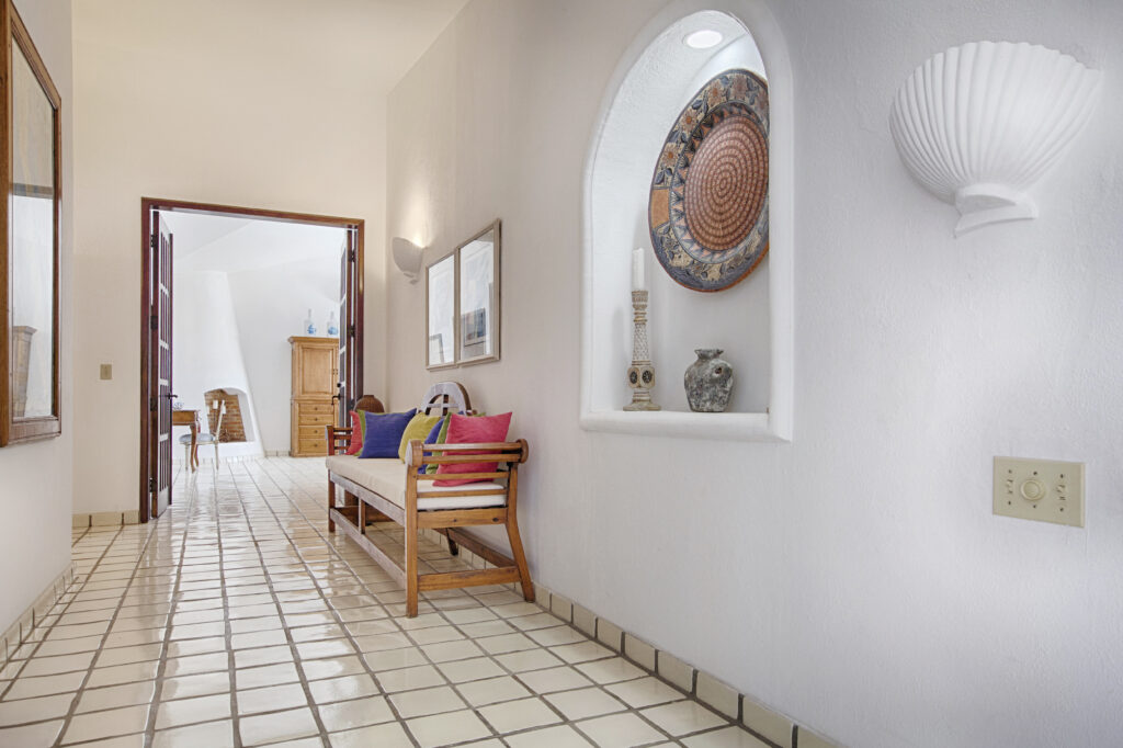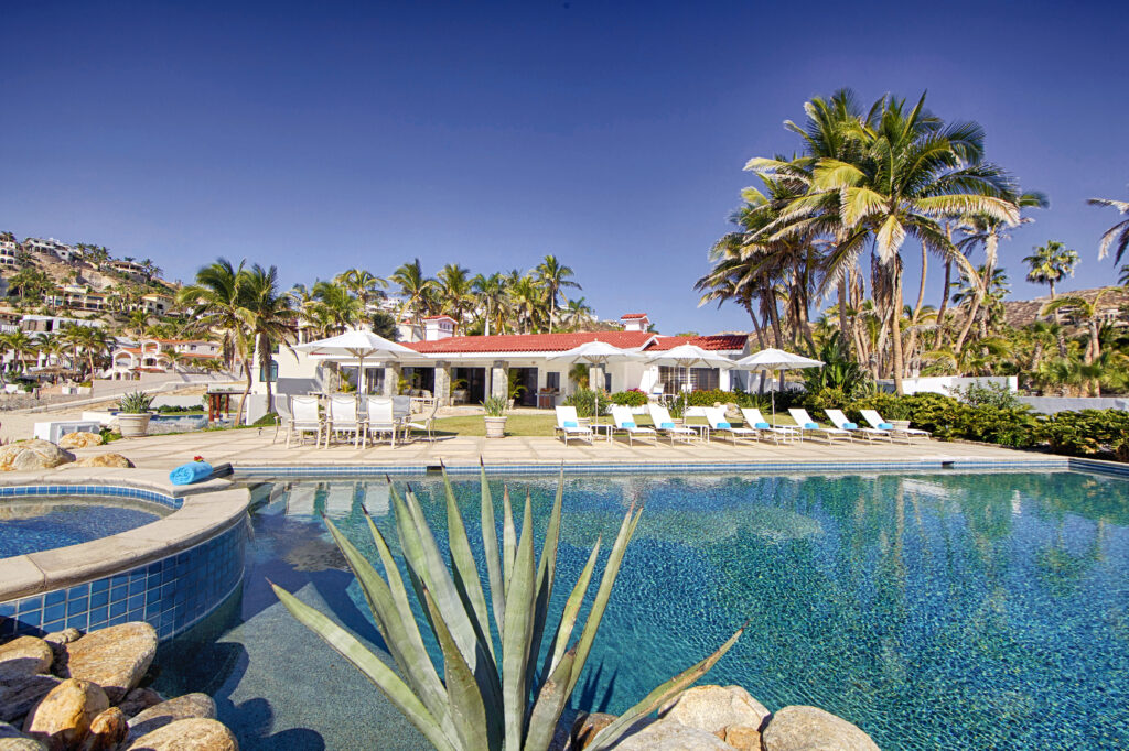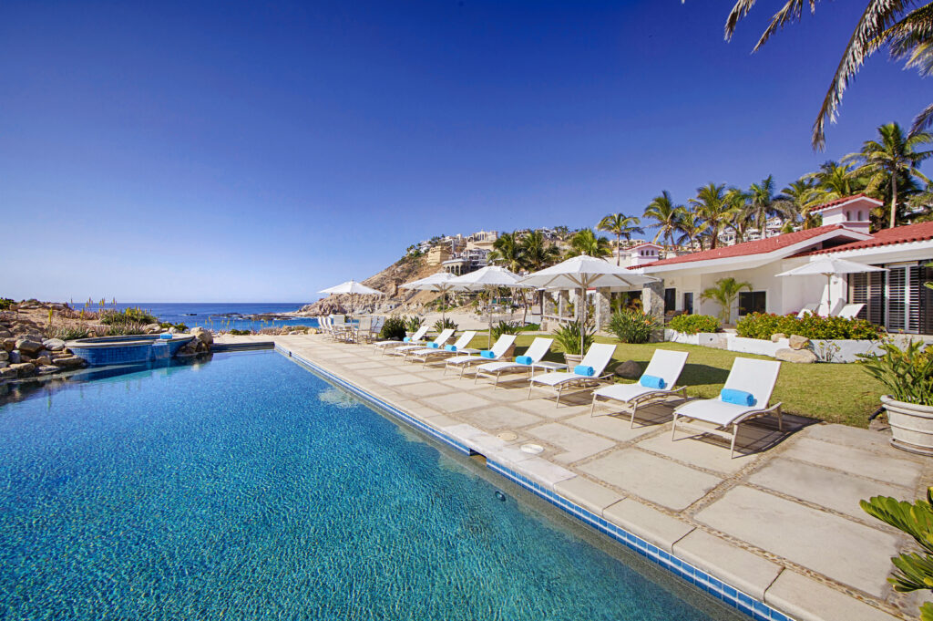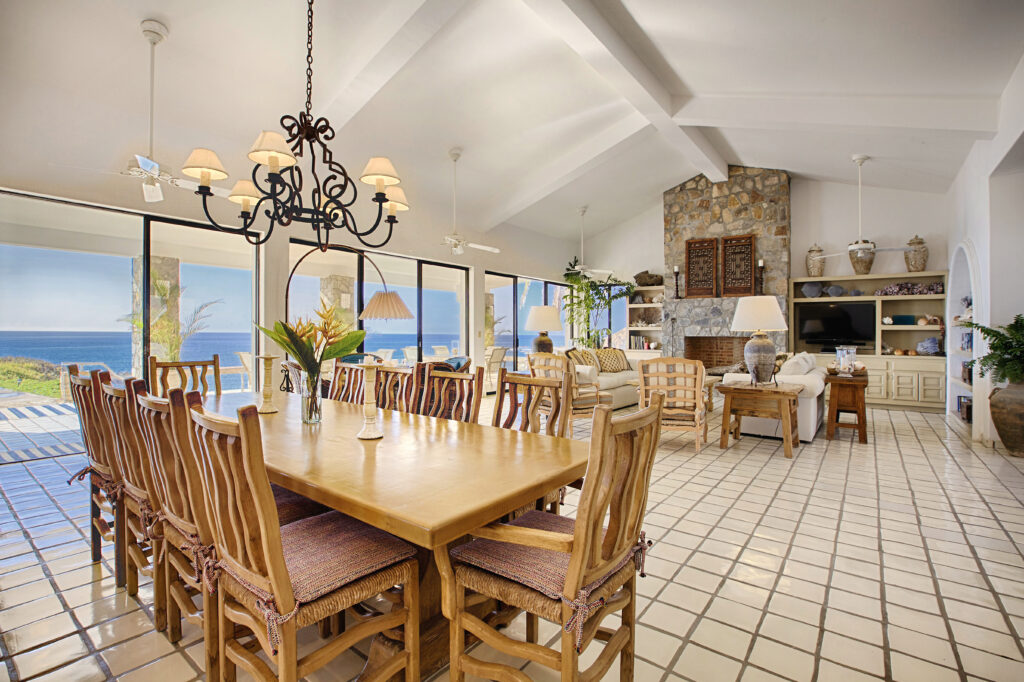 Located within the secluded Punta Bella community of Palmilla Sur, Mar de Vida Villa offers a unique blend of privacy and communal living. Designed on a single level to enhance the infusion of natural light, its layout promotes an intimate atmosphere while ensuring personal space. The villa features four private suites that converge around a central living area, boasting floor-to-ceiling glass walls that frame the stunning vistas of the Sea of Cortez.