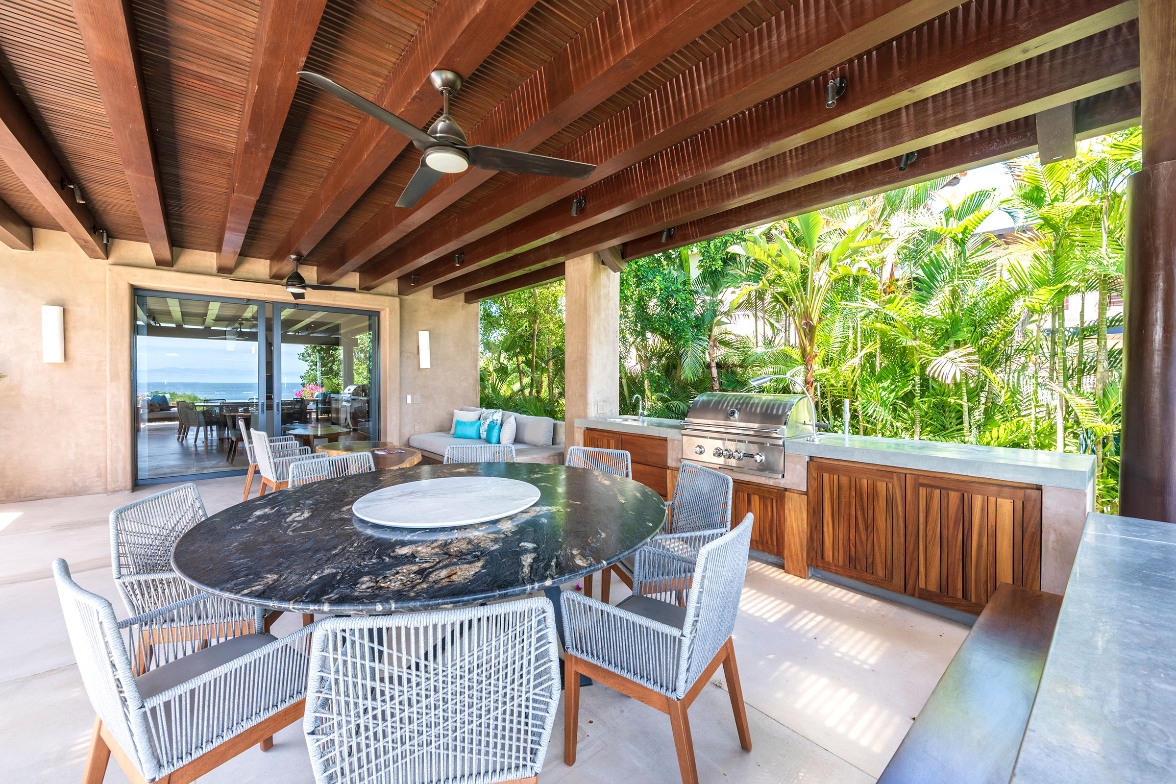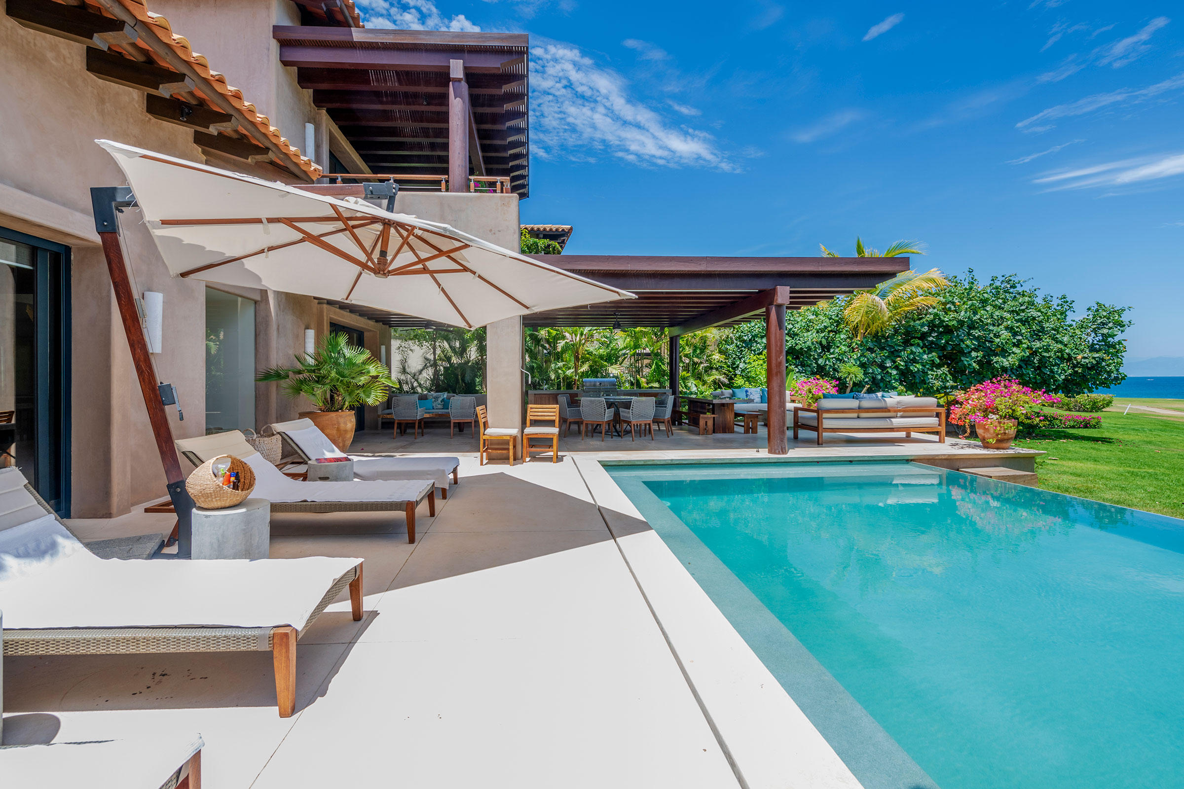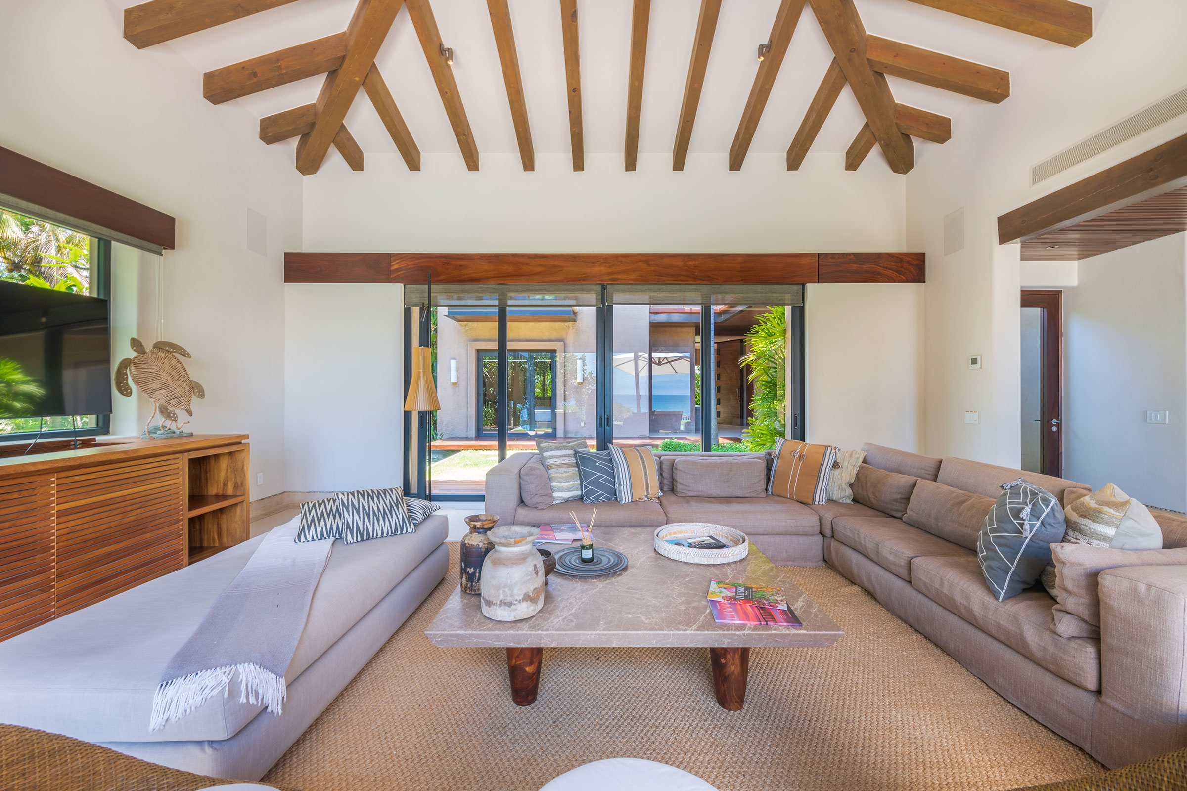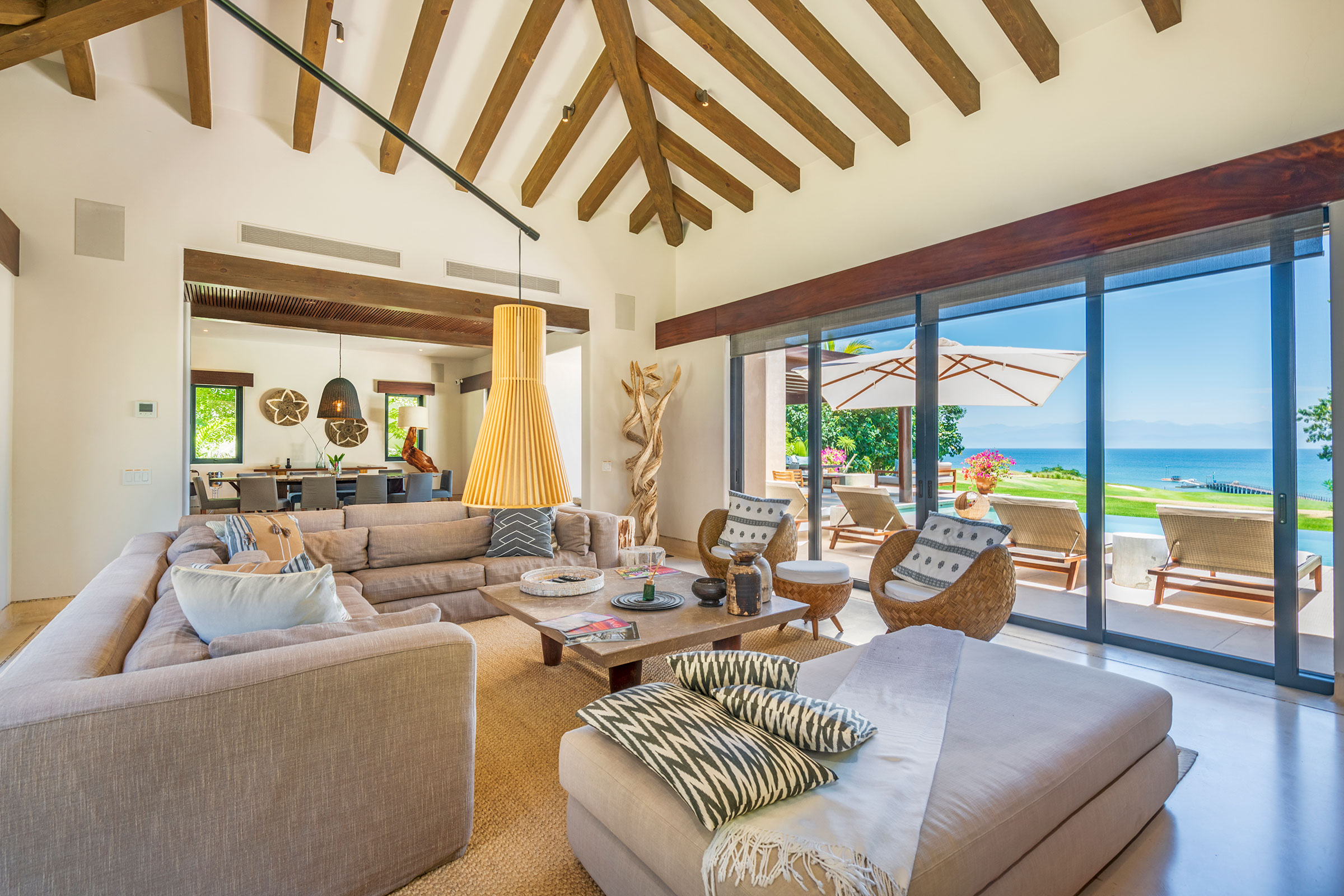 Spread across three levels, Villa Marlago blends traditional Mexican craftsmanship with thoughtful modern design. A central courtyard anchors the home with warmth and charm, while expansive terraces and open-concept living areas provide the perfect balance of connection and privacy. High ceilings and sliding glass doors invite natural light and ocean breezes, creating an airy, tranquil ambiance throughout.Whether gathering with friends or retreating to your own private space, this villa delivers an unforgettable Punta Mita experience.