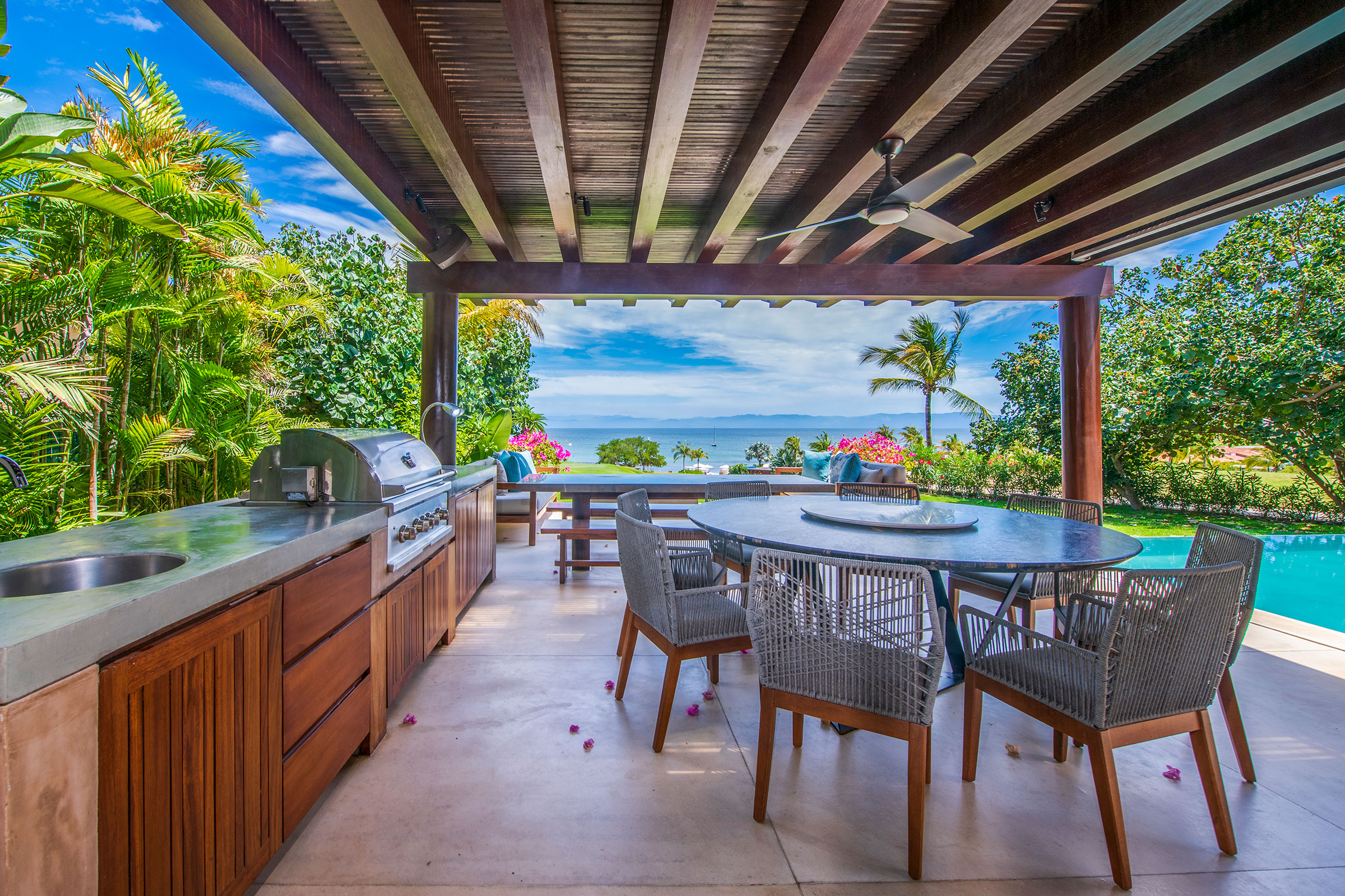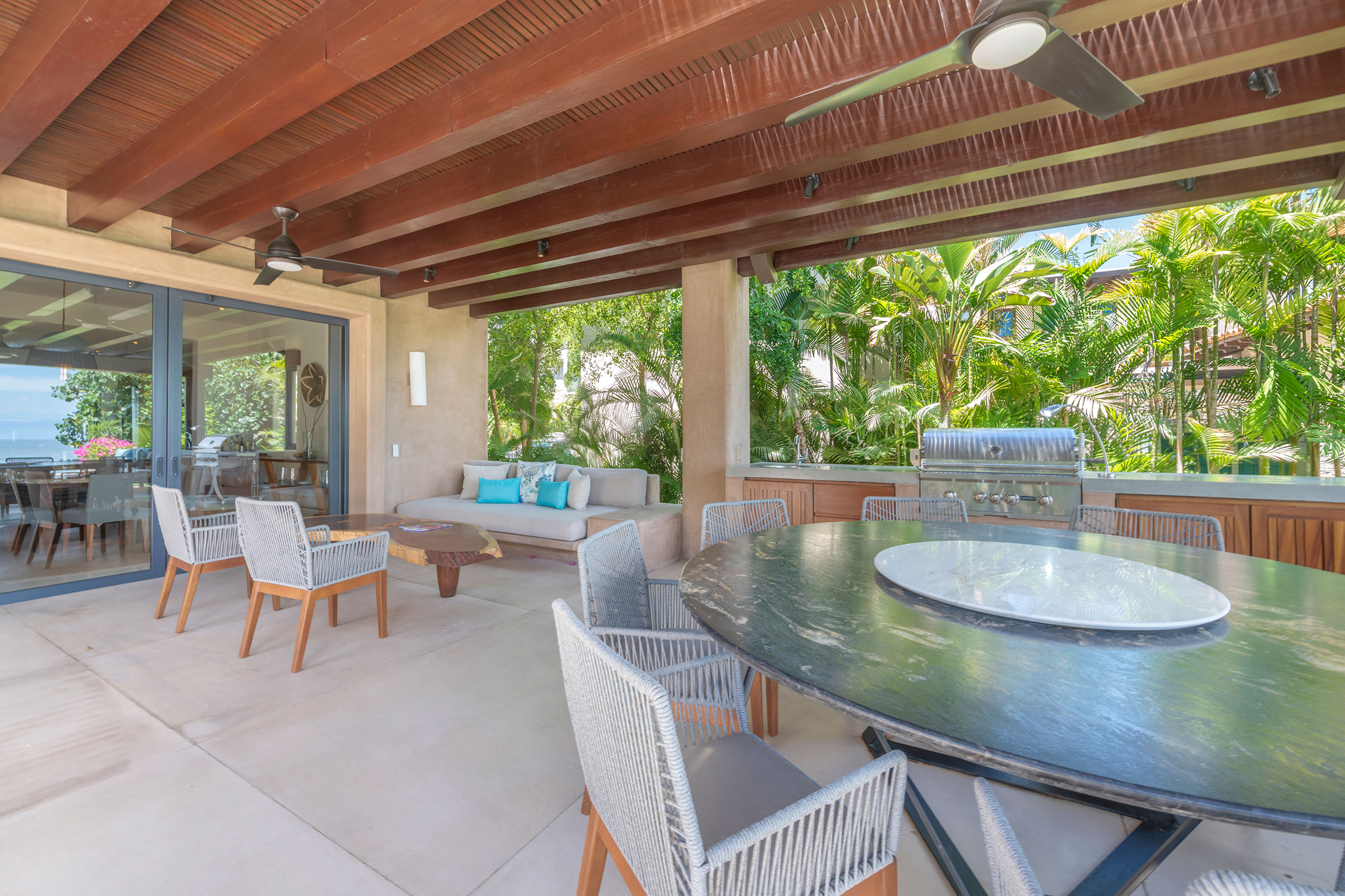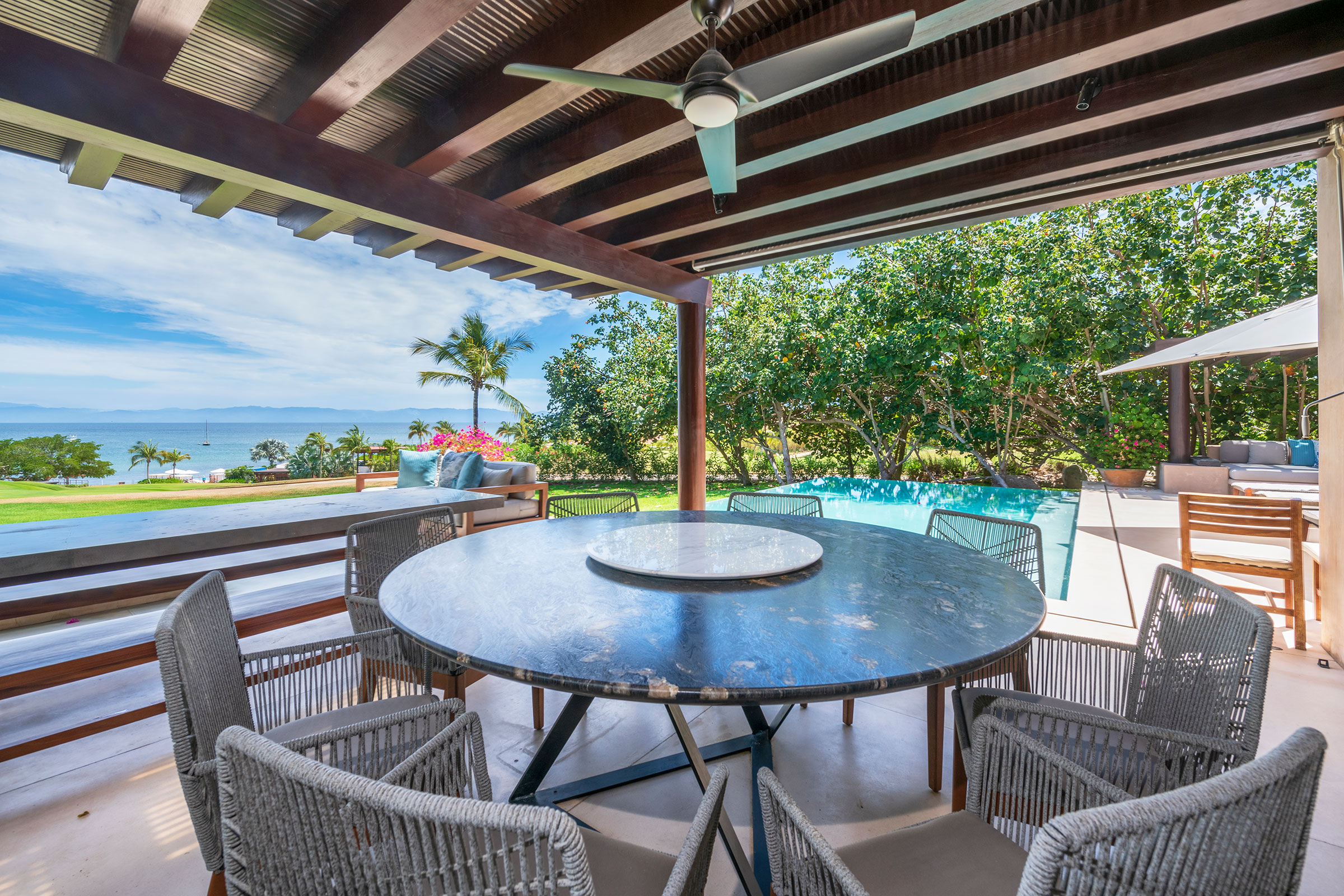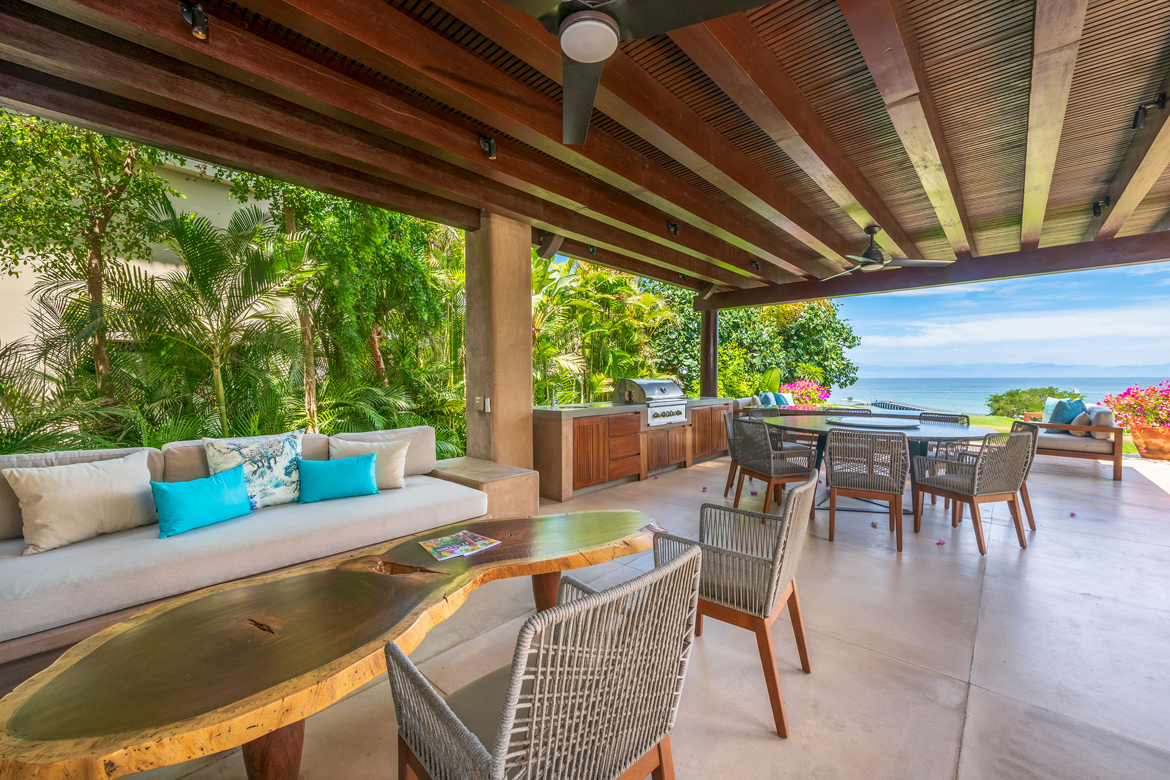 Spread across three levels, Villa Marlago blends traditional Mexican craftsmanship with thoughtful modern design. A central courtyard anchors the home with warmth and charm, while expansive terraces and open-concept living areas provide the perfect balance of connection and privacy. High ceilings and sliding glass doors invite natural light and ocean breezes, creating an airy, tranquil ambiance throughout.Whether gathering with friends or retreating to your own private space, this villa delivers an unforgettable Punta Mita experience.