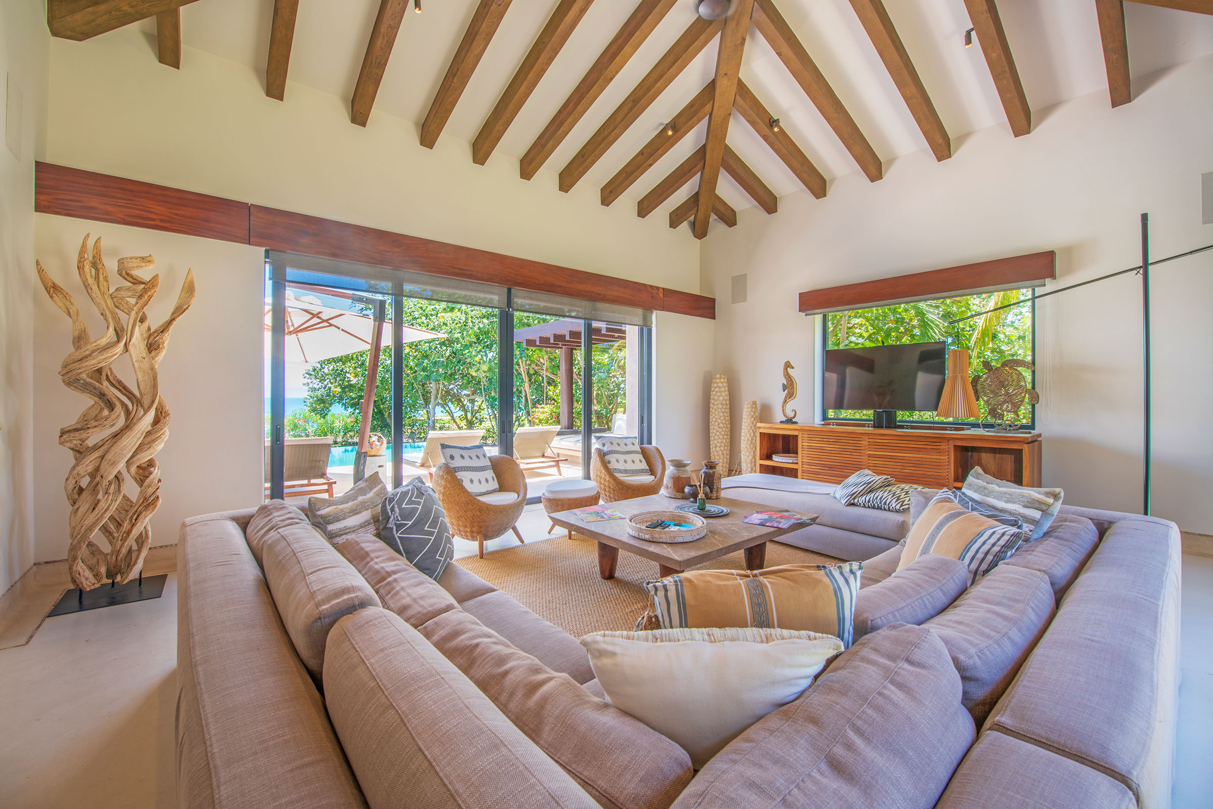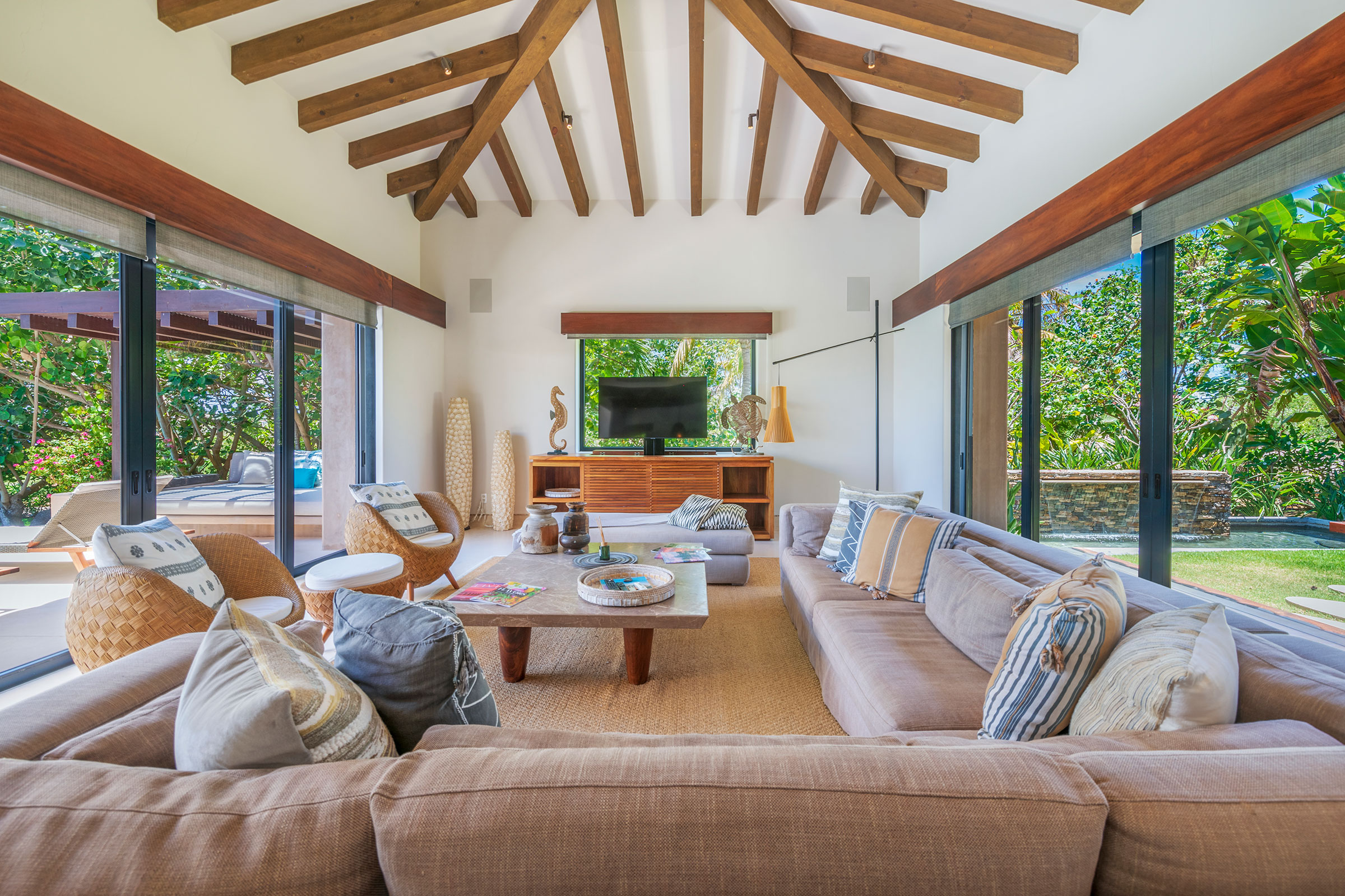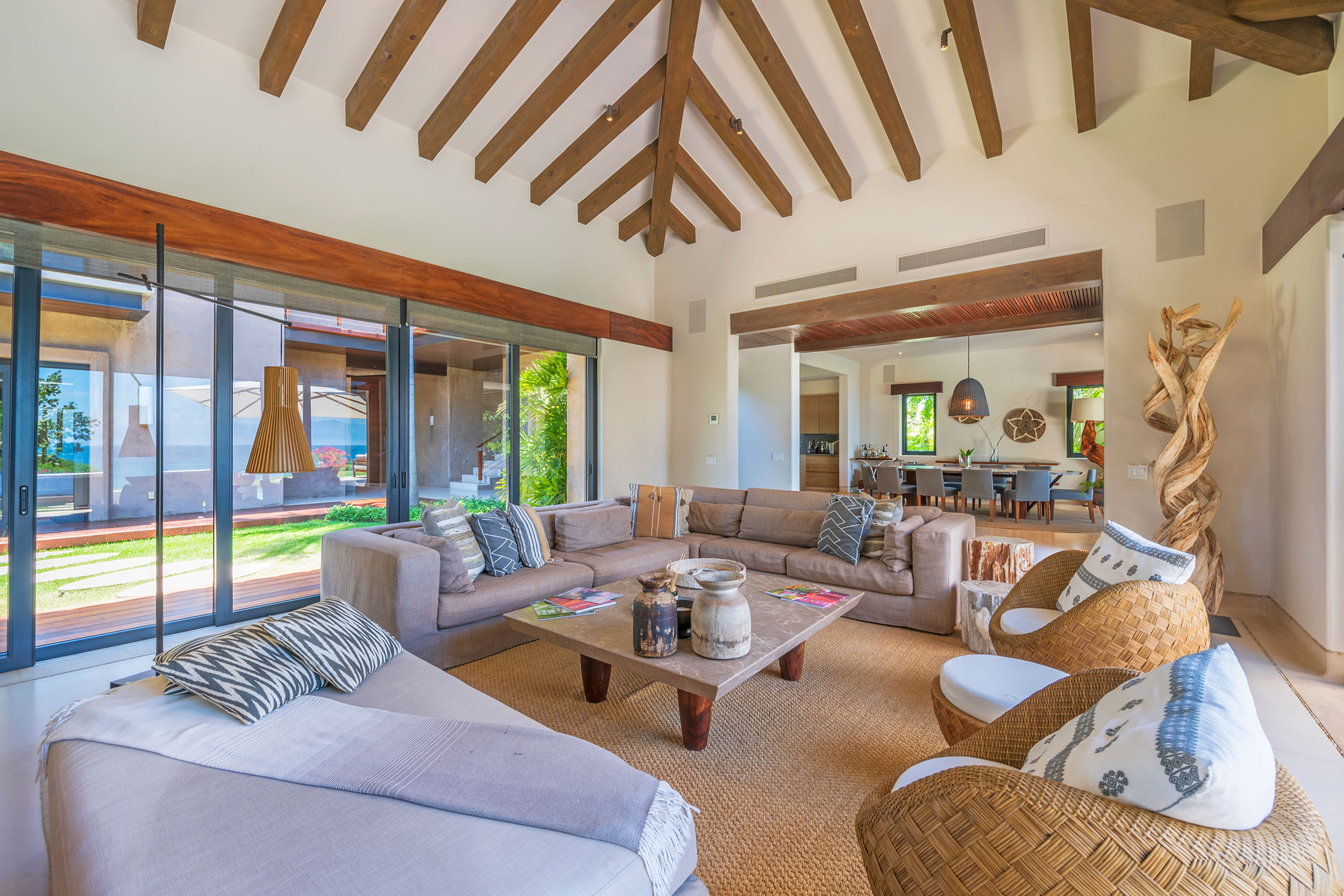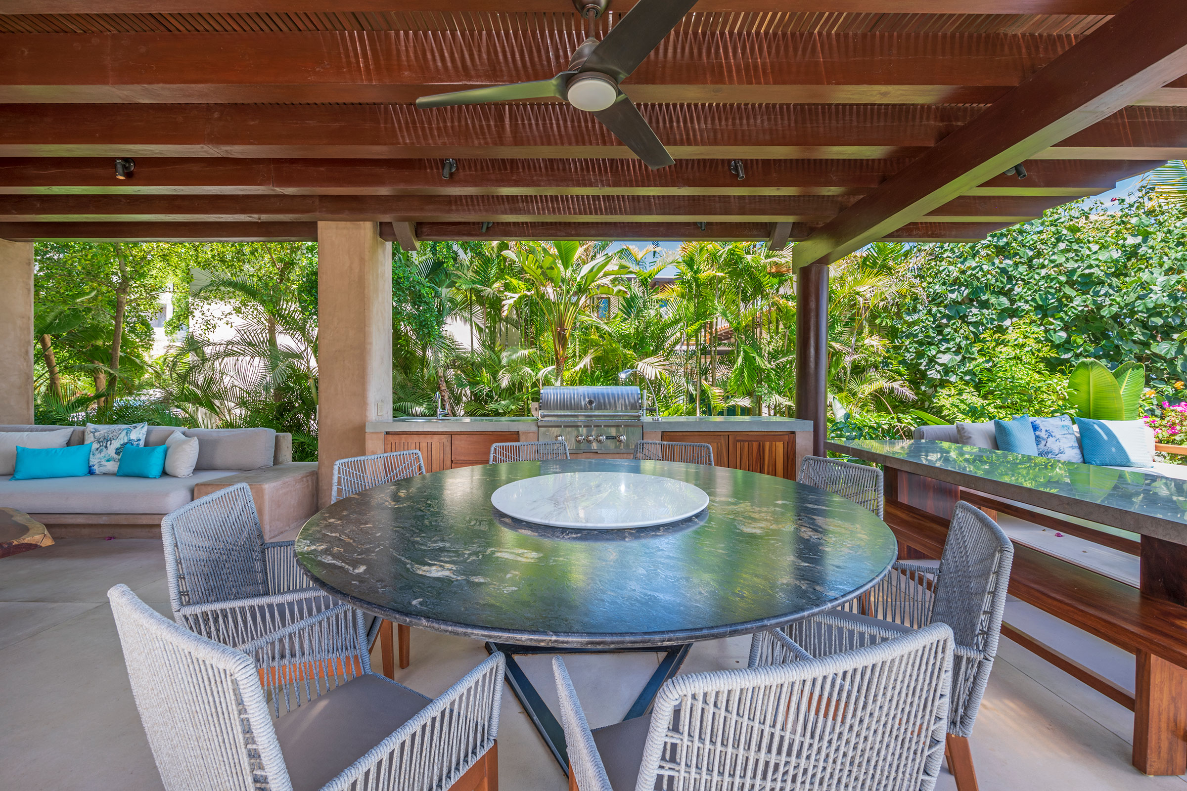 Spread across three levels, Villa Marlago blends traditional Mexican craftsmanship with thoughtful modern design. A central courtyard anchors the home with warmth and charm, while expansive terraces and open-concept living areas provide the perfect balance of connection and privacy. High ceilings and sliding glass doors invite natural light and ocean breezes, creating an airy, tranquil ambiance throughout.Whether gathering with friends or retreating to your own private space, this villa delivers an unforgettable Punta Mita experience.