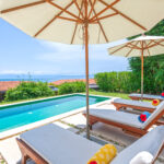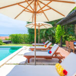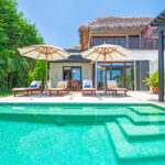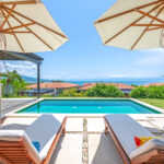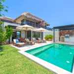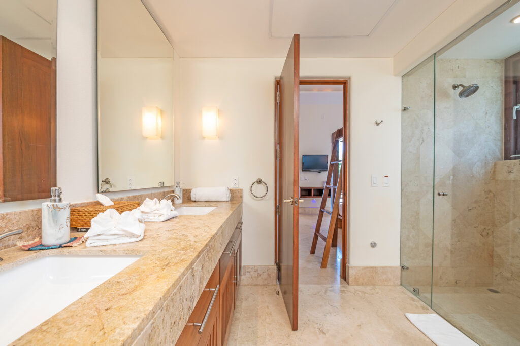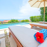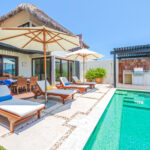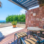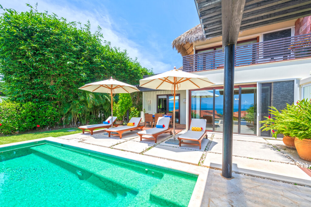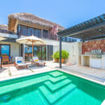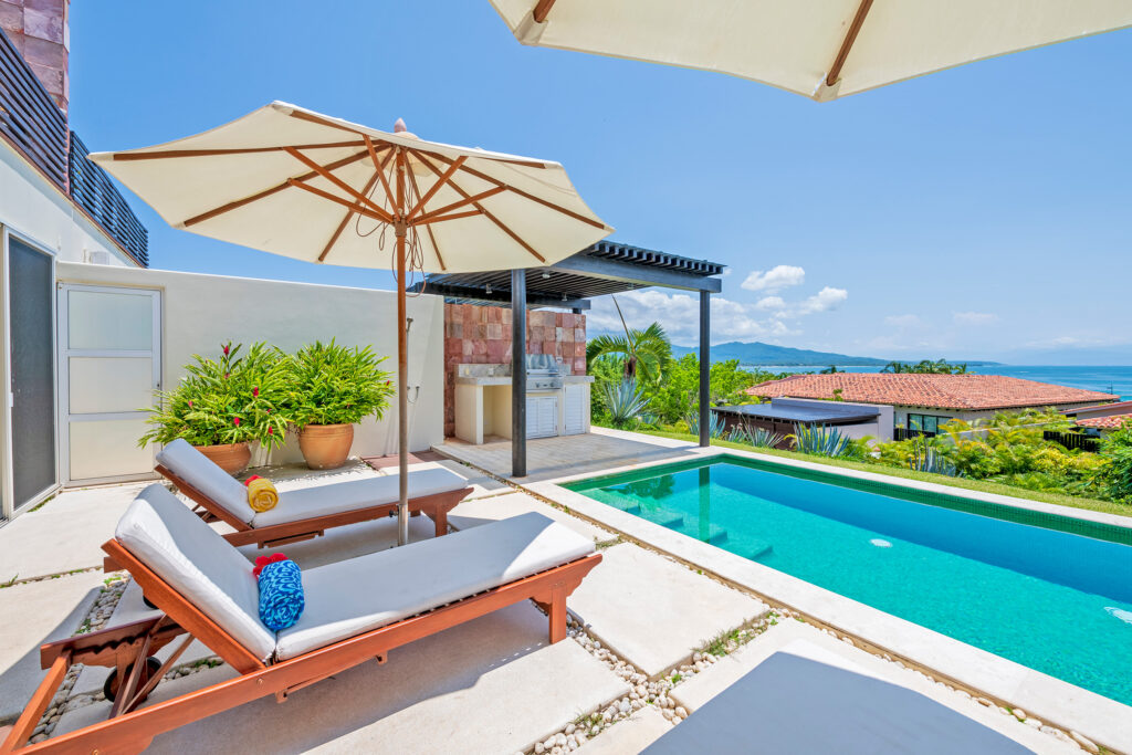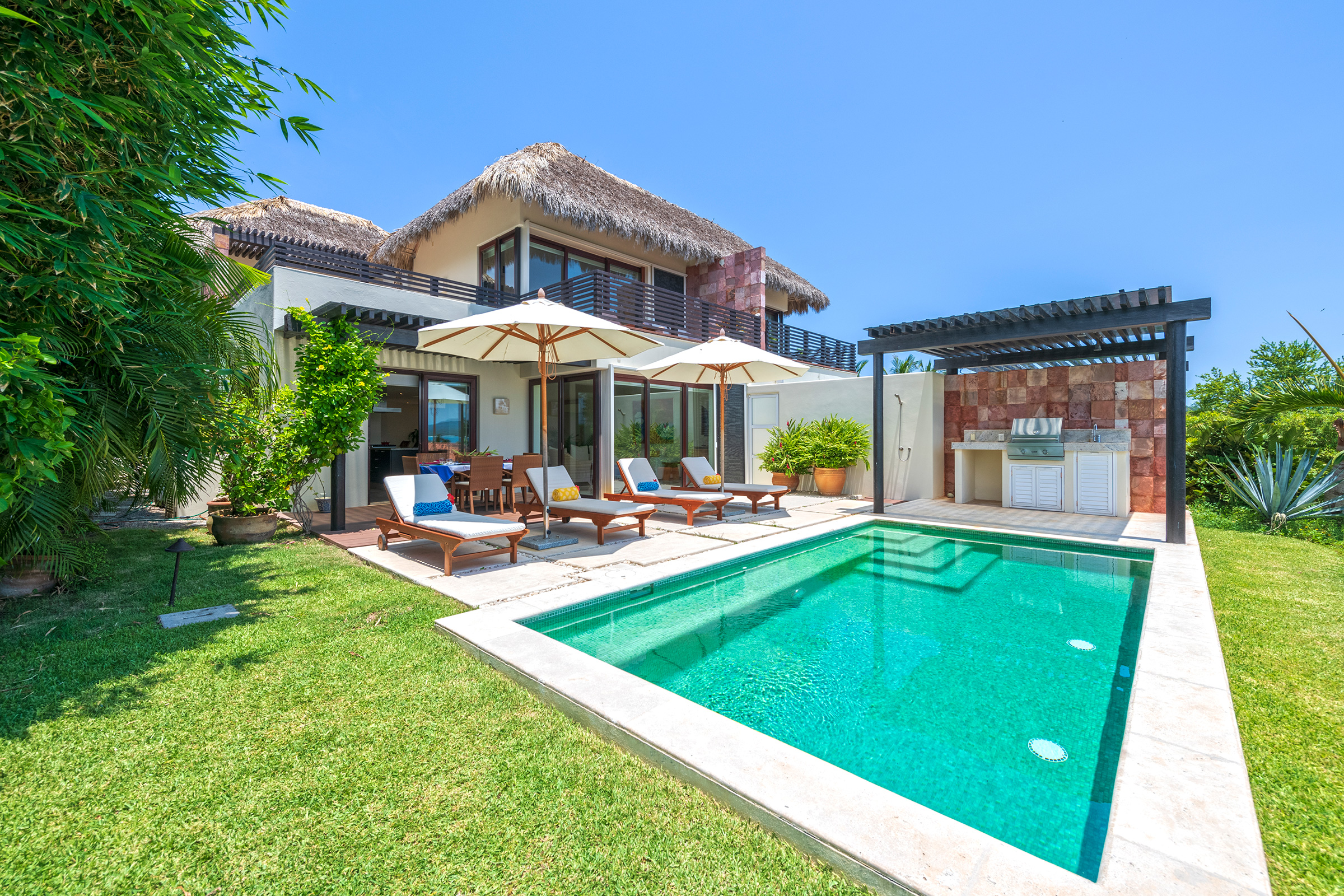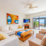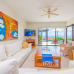 Experience luxury living in this stunning 3-bedroom, 4-bath oceanview villa in the exclusive Porta Fortuna community. Spanning 4,000 sq. ft. of indoor-outdoor space, the home features sweeping ocean views, a private pool, hot tub, and designer furnishings throughout. Enjoy seamless indoor-outdoor living with retractable glass walls in the upstairs master and living room. The villa comfortably sleeps up to 8 guests and includes access to resort-style amenities: a private beach club, concierge, housekeeping, chef service, and the renowned Sufi Restaurant just steps away. Every detail, from custom-crafted furniture to panoramic views, has been thoughtfully curated for guests who expect the same level of sophistication found at the Four Seasons or St. Regis.
