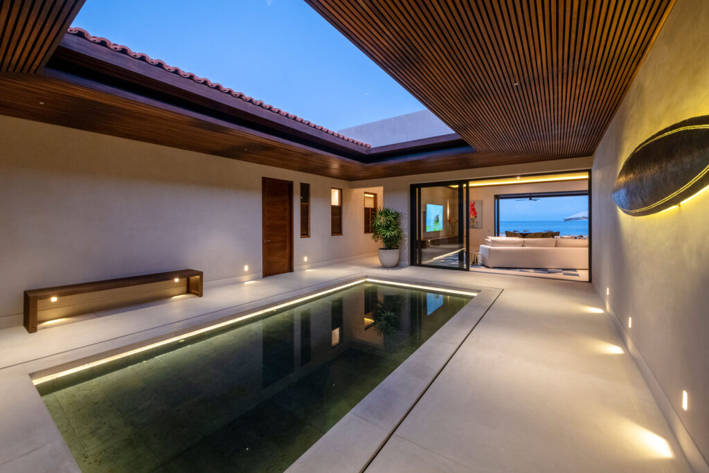 Situated along the pristine coastline of Punta Mita, Villa Tres Olas is a luxurious single-level, four-bedroom residence that seamlessly blends contemporary Mexican architecture with refined modern finishes. Designed around open hacienda-style courtyards, the villa offers expansive indoor-outdoor living spaces that frame spectacular views of the ocean. Each residence features a private pool, a two-car garage, and a golf cart for effortless exploration of the resort.